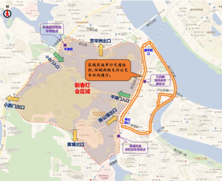 惠州西湖新春燈會將于1月26日至2月12日舉辦,為做好燈會期間交通安全保障工作,確保活動順利舉行,給市民游園賞燈提供安全便捷的出行環(huán)境,惠州市公安局交警支隊根據(jù)《中華人民共和國道路交通安全法》等有關(guān)法律法規(guī),將對西湖周邊部分路段實施臨時交通管制措施。