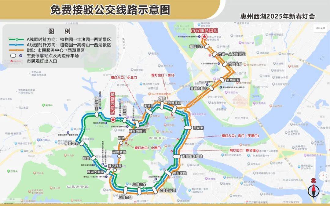 博羅、惠陽(yáng)、惠東的市民朋友想要賞燈,可乘坐定制公交專線,直達(dá)燈會(huì)入園入口(西湖東城軌站),回程于植物園總站上車,接送市民往返出行。