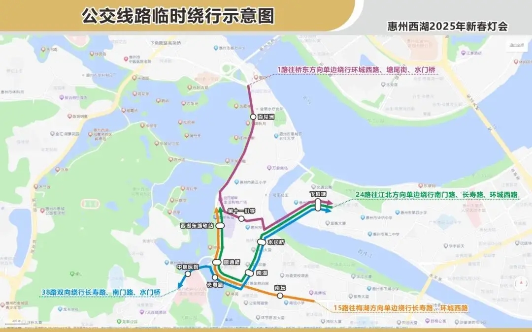 此外,1路、15路、24路、38路等4條公交線路部分路段將臨時(shí)繞行,具體如下: