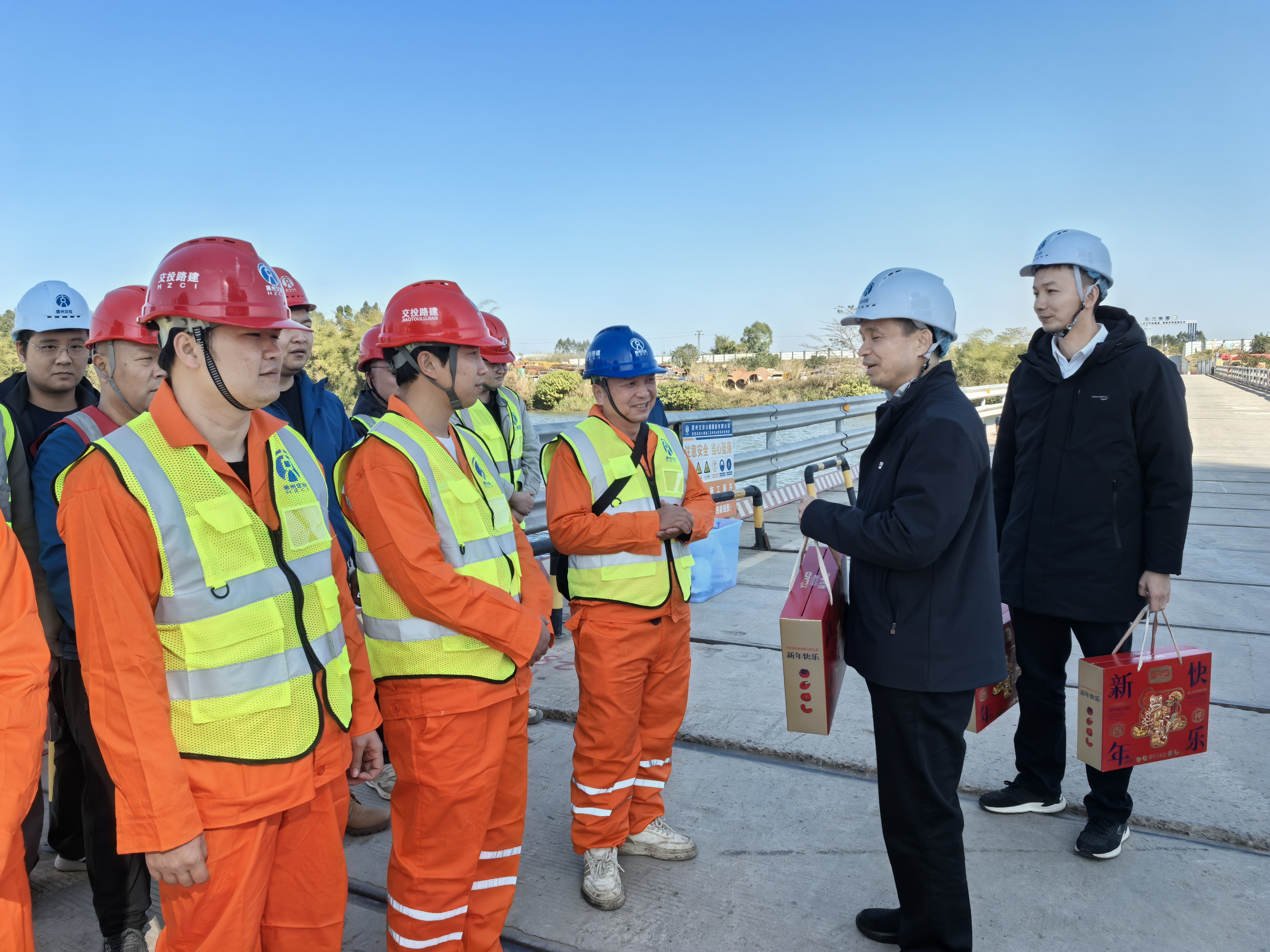 慰問組向惠霞高速東江特大橋建設(shè)者送去新春祝福。