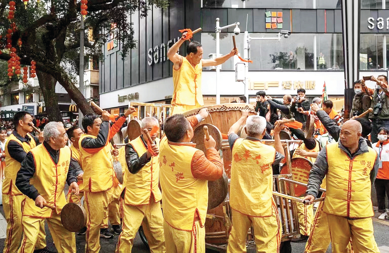“打龍華大鼓是我們一個(gè)很重要的民間習(xí)俗,已經(jīng)流傳幾百年了,我們有責(zé)任把這項(xiàng)民間藝術(shù)傳承下去。”李滿池說(shuō),只要有人愿意學(xué),他都愿意手把手認(rèn)真輔導(dǎo),“教年輕人握錘的姿勢(shì),怎么打鼓才不容易把鼓打爛,怎么打才比較靈活!背艘酝,李滿池還擔(dān)任龍華中心小學(xué)校外輔導(dǎo),這些年共教出了幾百名學(xué)生,其中“C位”鼓手就有三四十名。他還通過(guò)在龍華大鼓中增加旗幟、變化陣容等,為龍華大鼓傳承注入新動(dòng)力。