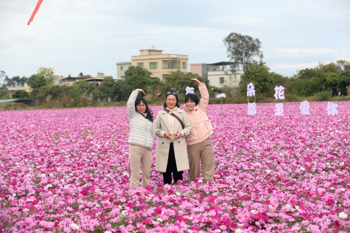 水口街道張村村好藝源生態(tài)園的格桑花開(kāi)得正盛,吸引眾多游客來(lái)打卡拍照。