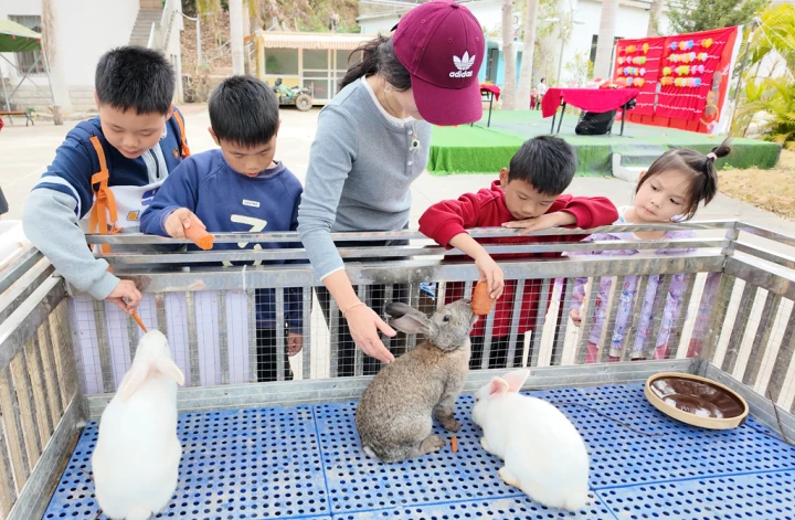 游客在共聯(lián)村一生態(tài)園投喂兔子,近距離感受動(dòng)物的溫存。