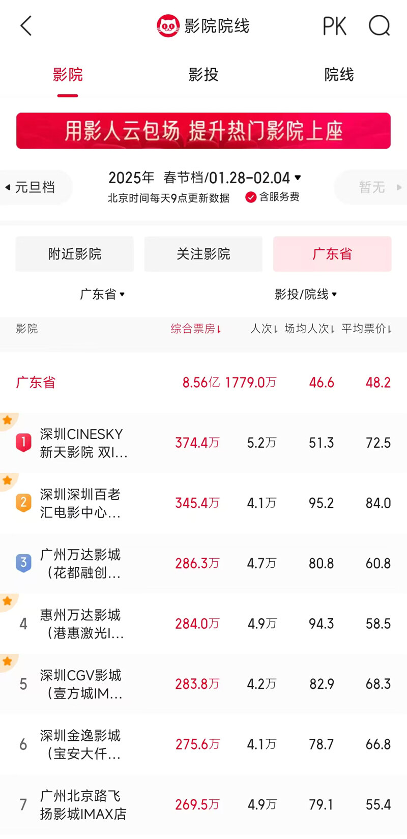 在影城表現(xiàn)方面,惠州萬(wàn)達(dá)影城港惠激光IMAX店表現(xiàn)亮眼。該影城在春節(jié)檔總票房達(dá)284萬(wàn)元,在廣東省排名第4位,上座率更是在廣東省排名第1,其票房和上座率在惠州本地同樣穩(wěn)居榜首。