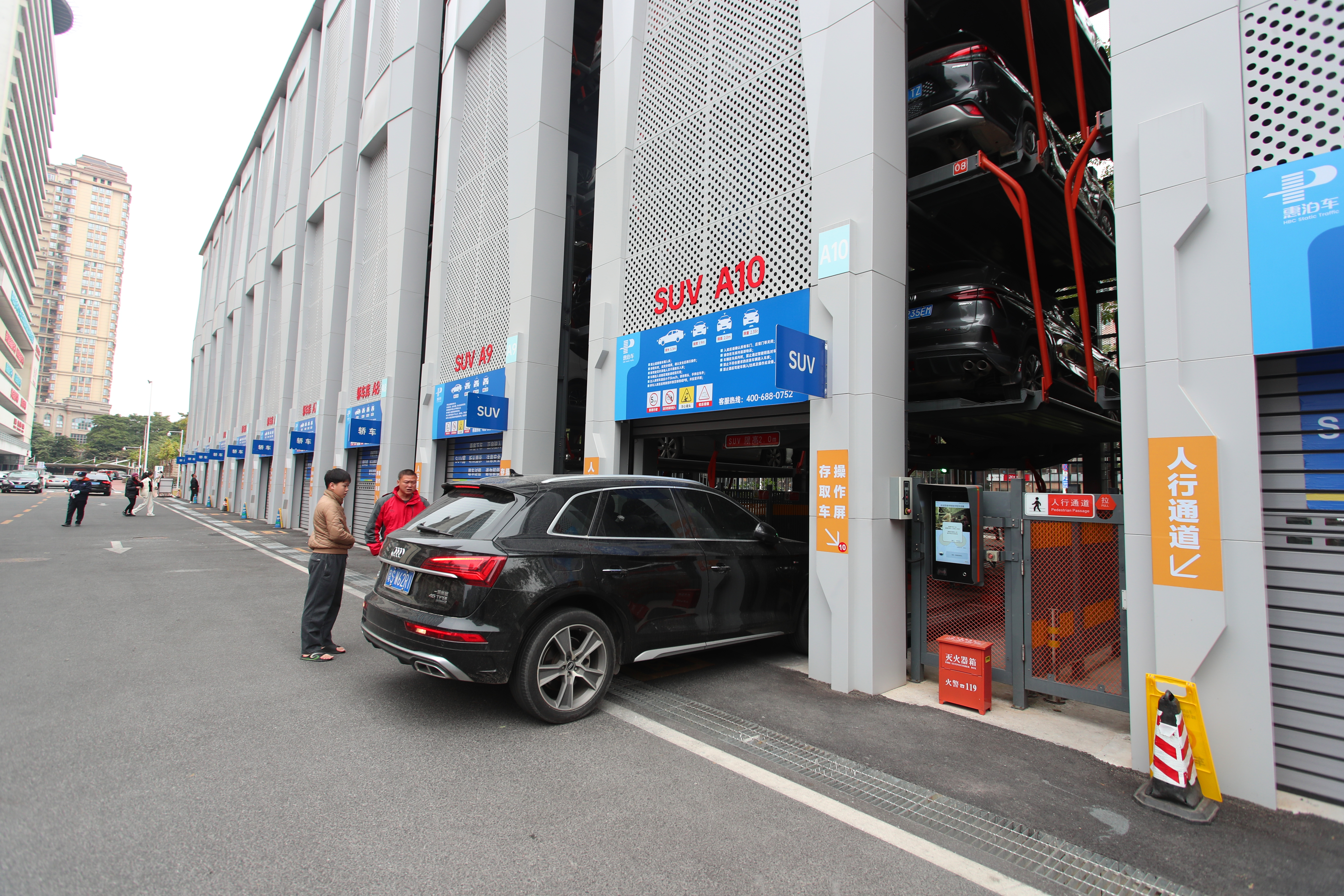 “您好,停車入口在前面左轉(zhuǎn)!薄败囎油:煤笳堄浀美謩x!薄斑@是機械式停車樓,取車時直接在電子屏幕輸入車牌號即可。”……在“惠泊車”各停車場,現(xiàn)場管理人員身著反光背心,手持對講機,忙碌地穿梭于車流之間。他們用規(guī)范的手勢和清晰的指令,引導車輛有序進出,合理停放。面對車主的疑難困惑,工作人員耐心解答,熱情服務,確保每一輛車都能快速找到停車位,避免擁堵。