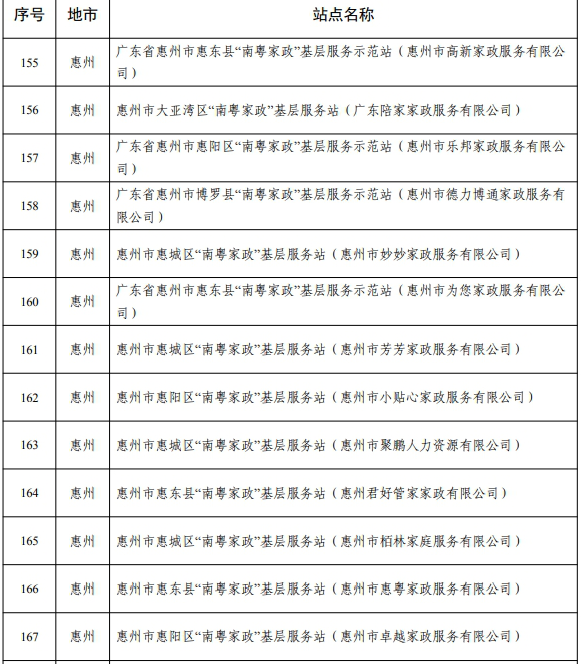 附:2024年度省“南粵家政”基層服務(wù)站績效評估惠州家政企業(yè)評估結(jié)果
