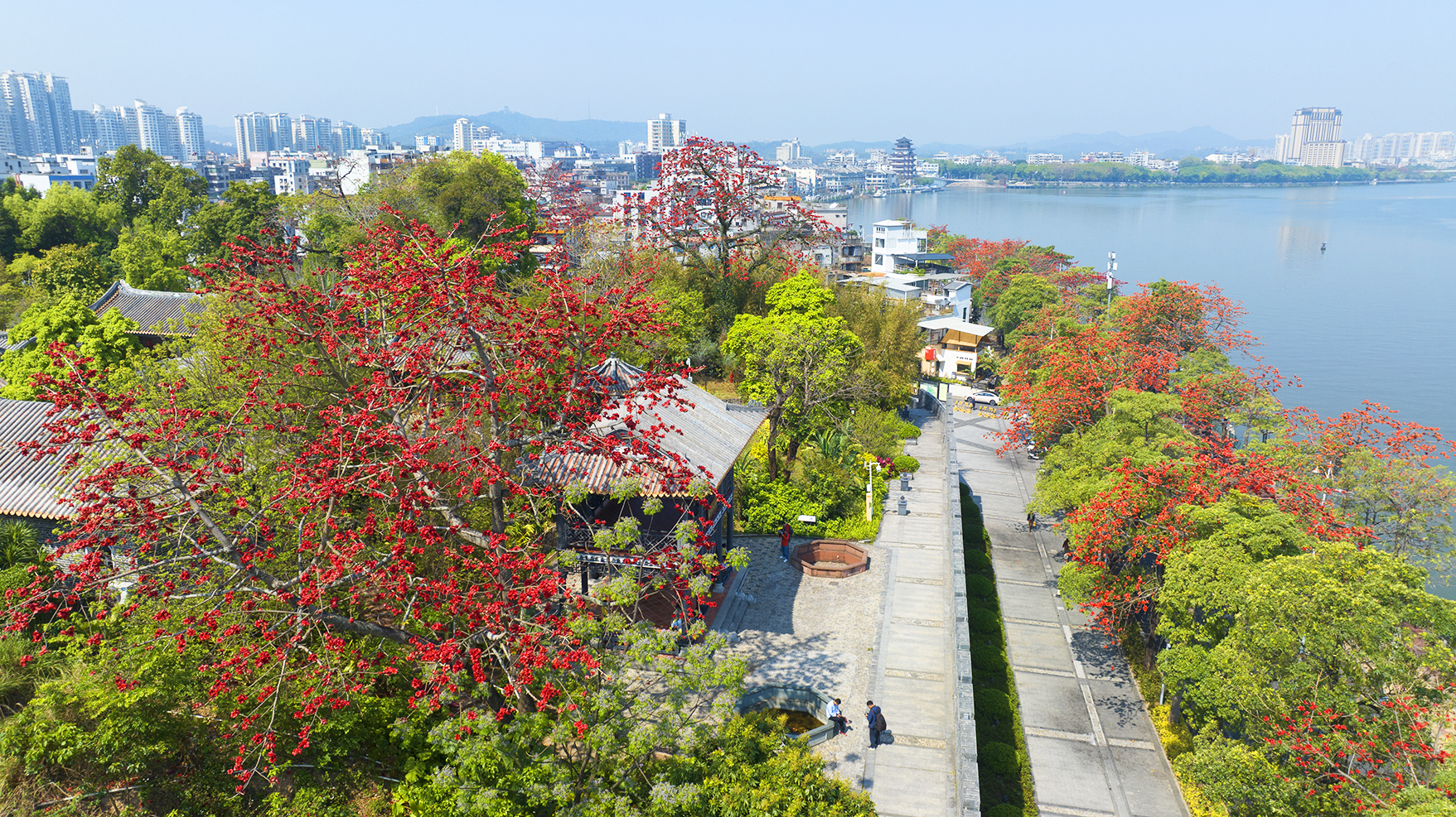 木棉花開,春意盎然。3月21日,鵝城春日,惠州蘇東坡祠的木棉花熱烈綻放,一樹樹火紅的花朵,將惠州蘇東坡祠映襯得格外壯麗,吸引游客紛至沓來。