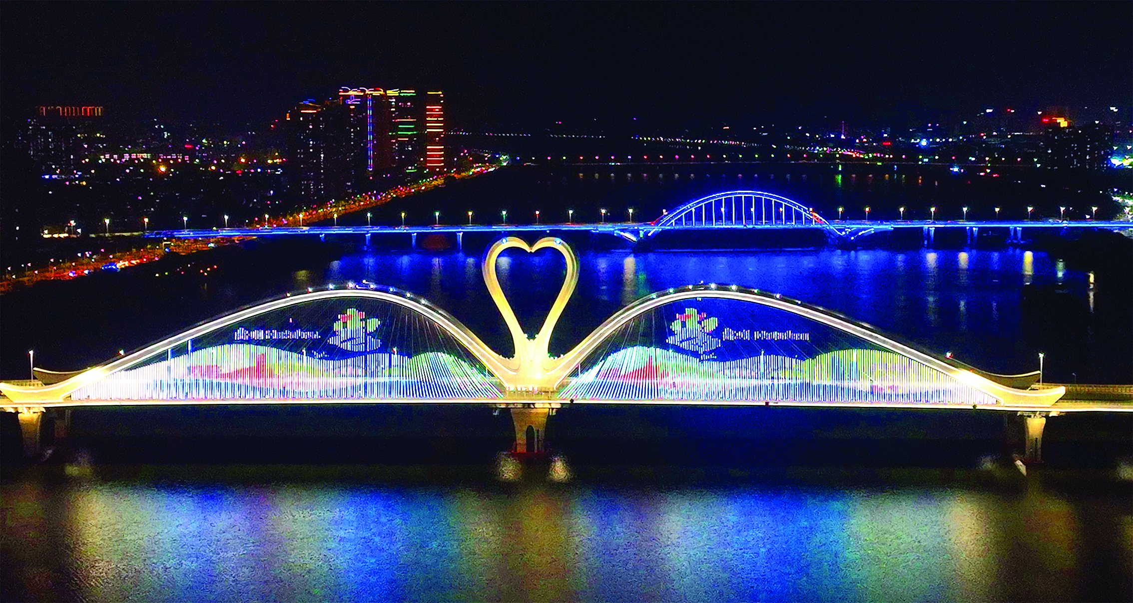 3月26日晚,鵝城大橋等城市地標(biāo)亮燈,以燈光秀展示惠州城市品牌形象標(biāo)識等內(nèi)容;葜萑請笥浾哏姇承 攝