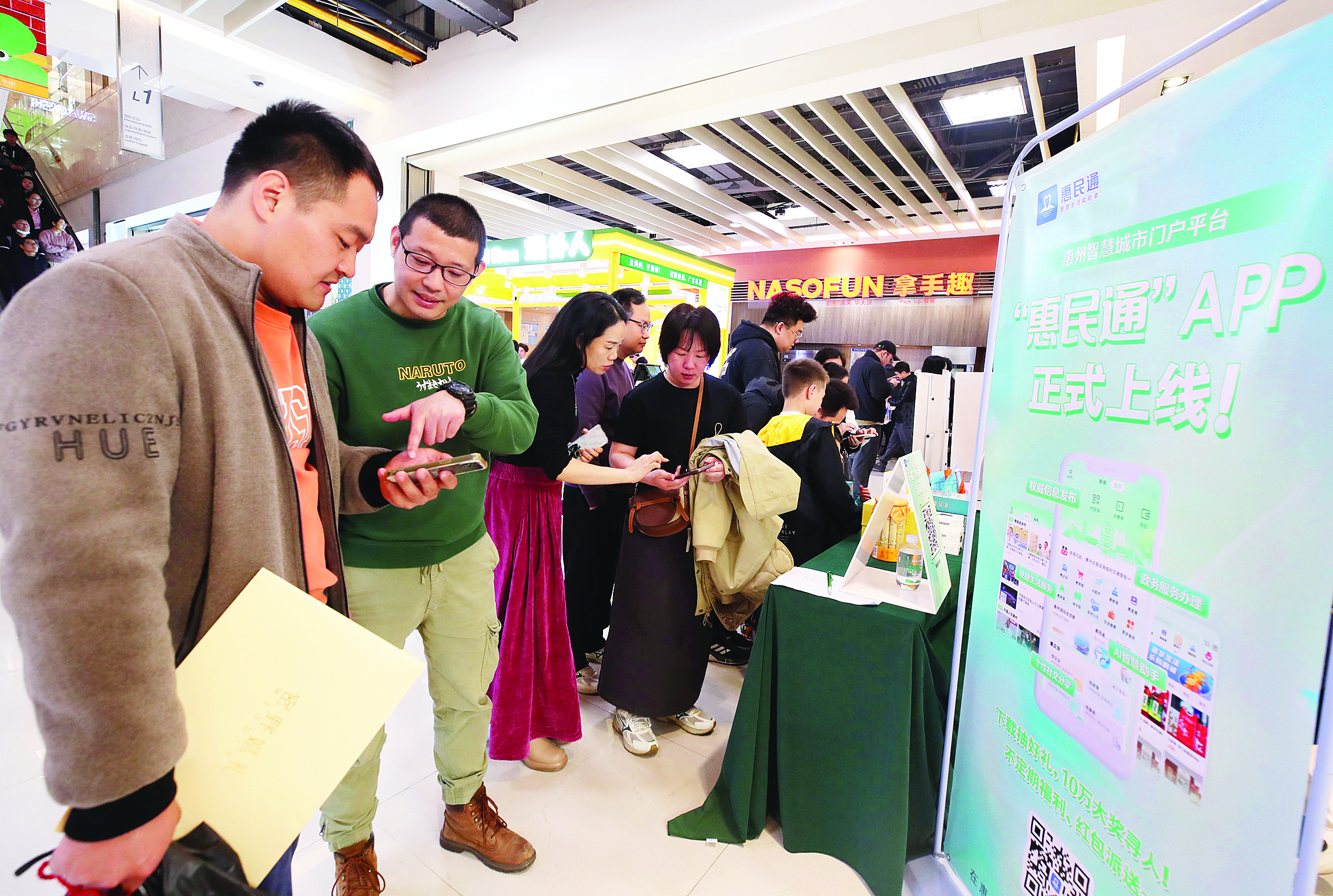 3月29日,在推廣活動現(xiàn)場,不少市民下載惠民通APP進行體驗;葜萑請笥浾哏姇承 攝