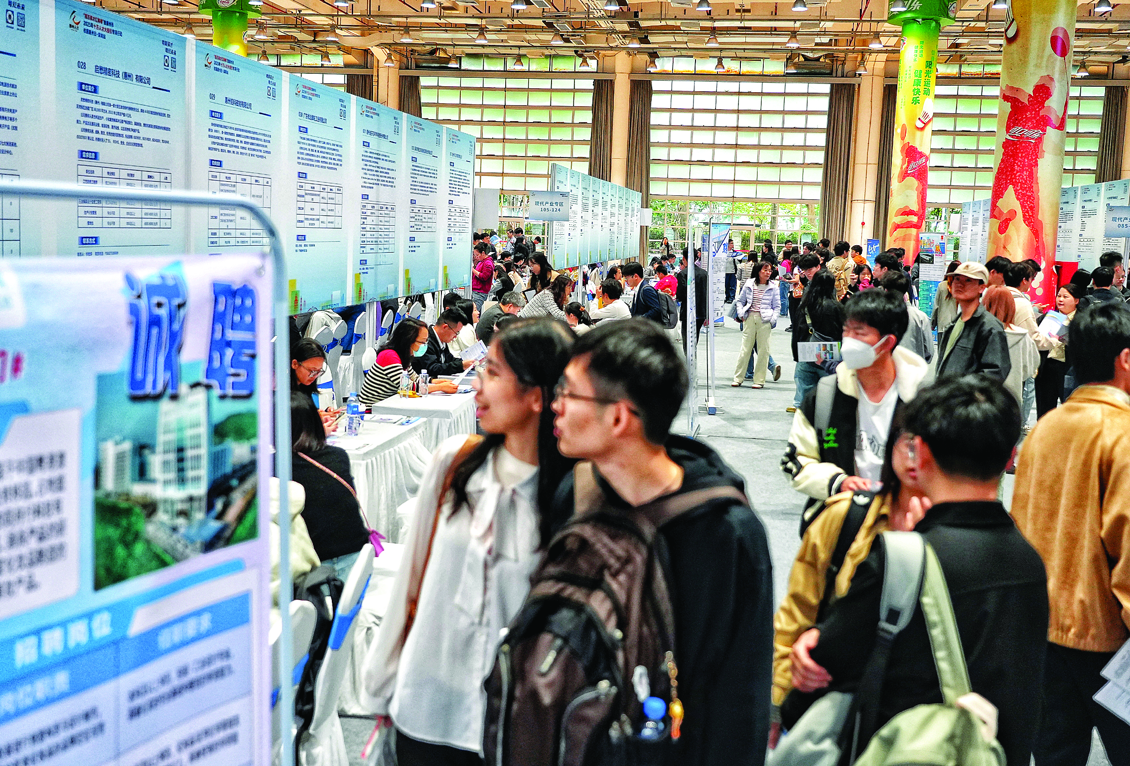 招聘會是企業(yè)和求職者進(jìn)行雙向選擇的平臺,企業(yè)借此招攬人才,求職者則尋找合適的工作機(jī)會;葜萑請笥浾呃钏蓹(quán) 朱金贊 攝