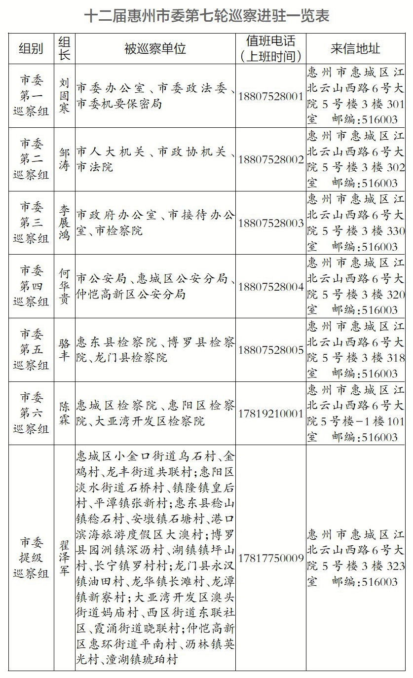 各市委巡察組組長(zhǎng)強(qiáng)調(diào),將嚴(yán)格按照市委巡察工作部署要求,深入學(xué)習(xí)貫徹習(xí)近平總書(shū)記關(guān)于黨的自我革命的重要思想和關(guān)于巡視工作的重要論述,堅(jiān)守政治巡察定位,把“兩個(gè)維護(hù)”作為根本任務(wù),堅(jiān)持人民立場(chǎng),發(fā)揚(yáng)斗爭(zhēng)精神,緊盯權(quán)力和責(zé)任,緊盯“一把手”和領(lǐng)導(dǎo)班子,緊盯全面從嚴(yán)治黨階段性特征,緊盯群眾反映強(qiáng)烈的突出問(wèn)題,推進(jìn)政治監(jiān)督具體化、精準(zhǔn)化、常態(tài)化。重點(diǎn)檢查落實(shí)黨的理論和路線(xiàn)方針政策、黨中央重大決策部署特別是貫徹落實(shí)習(xí)近平總書(shū)記重要講話(huà)重要指示精神情況;重點(diǎn)檢查落實(shí)全面從嚴(yán)治黨“兩個(gè)責(zé)任”、推進(jìn)黨風(fēng)廉政建設(shè)和反腐敗斗爭(zhēng)以及整治群眾身邊不正之風(fēng)和腐敗問(wèn)題情況;重點(diǎn)檢查落實(shí)新時(shí)代黨的組織路線(xiàn)和貫徹執(zhí)行民主集中制,加強(qiáng)領(lǐng)導(dǎo)班子和干部人才隊(duì)伍建設(shè)、基層黨組織建設(shè)情況;重點(diǎn)檢查落實(shí)巡察、審計(jì)等監(jiān)督發(fā)現(xiàn)問(wèn)題整改和成果運(yùn)用情況。以護(hù)航惠州高質(zhì)量發(fā)展為目標(biāo),有力發(fā)揮巡察“掃描儀”作用,推動(dòng)以巡促改、以巡促建、以巡促治,推動(dòng)黨中央決策部署和省委、市委工作要求落地見(jiàn)效,持續(xù)增強(qiáng)人民群眾獲得感、幸福感和安全感,為惠州加快打造廣東高質(zhì)量發(fā)展新增長(zhǎng)極提供政治保障。