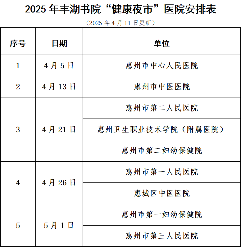 ▲實(shí)際安排的醫(yī)院請(qǐng)以現(xiàn)場(chǎng)情況為準(zhǔn)。若想了解后續(xù)動(dòng)態(tài),歡迎關(guān)注“文明惠州”公眾號(hào),獲取最新消息。