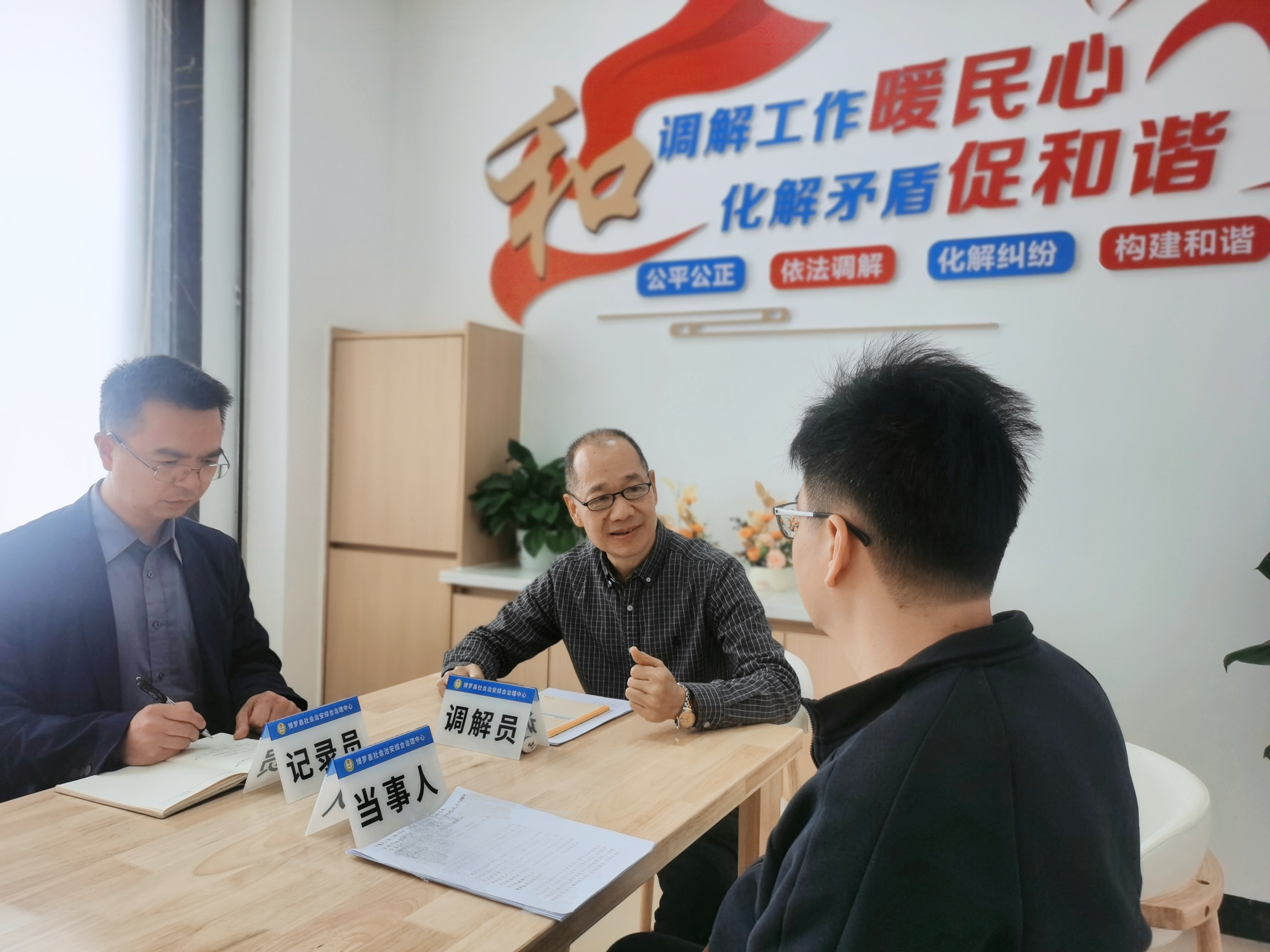 綜治中心靈活調(diào)配各方調(diào)解力量化解矛盾糾紛。圖片由博羅縣委政法委提供