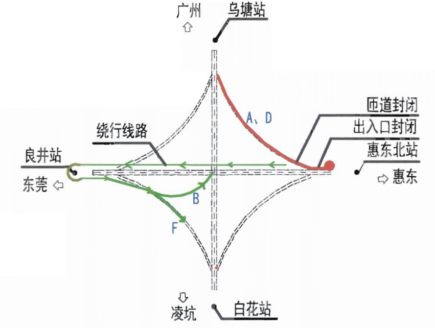 4月25日6:00至12:00,S21廣惠高速往廣州方向大嶺互通轉(zhuǎn)G1523潮莞高速惠州段出口匝道實(shí)施交通管制,禁止車輛通行,建議車輛由S21廣惠高速主線往廣州方向行駛至烏塘站繞行,掉頭后行駛S21廣惠高速主線往凌坑方向分別經(jīng)大嶺互通G、E匝道前往G1523潮莞高速惠州段東莞和潮州方向。