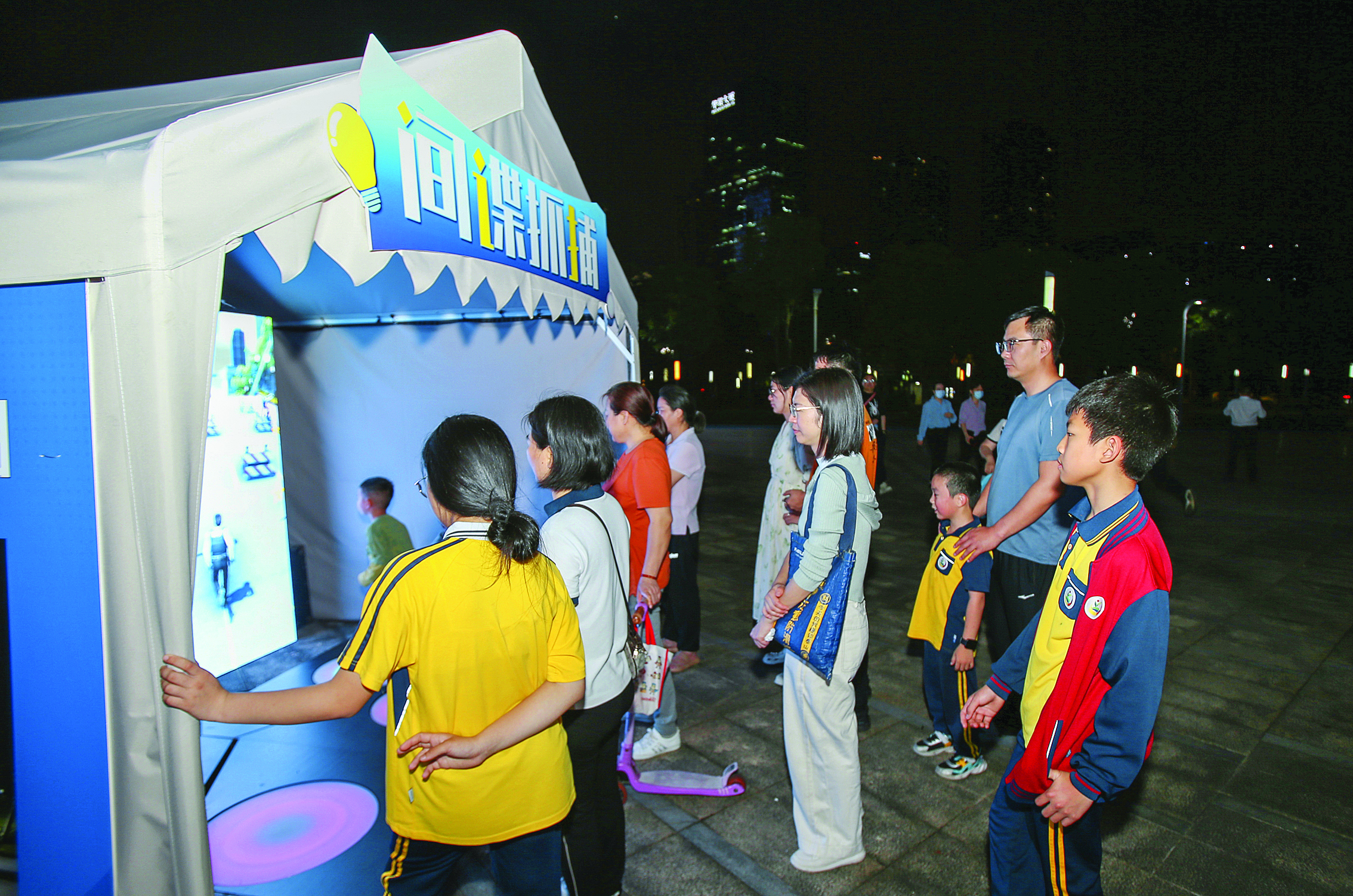 11日晚7時許,主題燈光展亮燈儀式在主會場市民公園啟動,活動現(xiàn)場變成一片科技藝術(shù)的海洋,總體國家安全觀主題展板、結(jié)合光影互動的特色打卡裝置、裸眼三維視頻內(nèi)容展示……一幅幅極具沖擊力的炫彩畫面,成為廣大市民的主要打卡點;顒蝇F(xiàn)場結(jié)合互動裝置體驗“零號任務(wù)”、“間諜抓捕”、AI換臉、AI互動拍照等游戲環(huán)節(jié),以市民喜聞樂見的形式將國家安全相關(guān)知識有機(jī)融入,讓國家安全變得可感可傳。