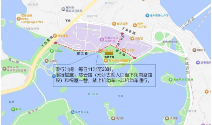 為進(jìn)一步優(yōu)化惠州市惠城區(qū)江南街道祝屋巷交通組織,改善周邊交通環(huán)境,更好確保市民、游客安全出行,惠州市公安局交通警察支隊(duì)根據(jù)《中華人民共和國道路交通安全法》有關(guān)規(guī)定,對慈云路(元妙古觀入口至下角南路路段)和祝屋一巷交通組織進(jìn)行調(diào)整。