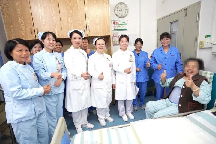 患者給醫(yī)護(hù)人員和護(hù)理員點(diǎn)贊。圖片由惠州市中心人民醫(yī)院提供