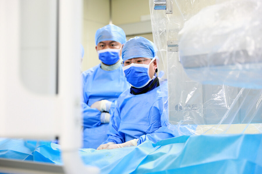 這是冊亨首例頸動脈和椎動脈支架植入手術(shù)。手術(shù)的過程也是示范教學(xué)的一部分,景英朝在手術(shù)中為當?shù)蒯t(yī)生詳細講解手術(shù)步驟、操作技巧及注意事項。