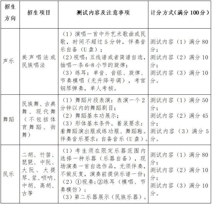 1.音樂(lè)/舞蹈/美術(shù):面向全市招生;