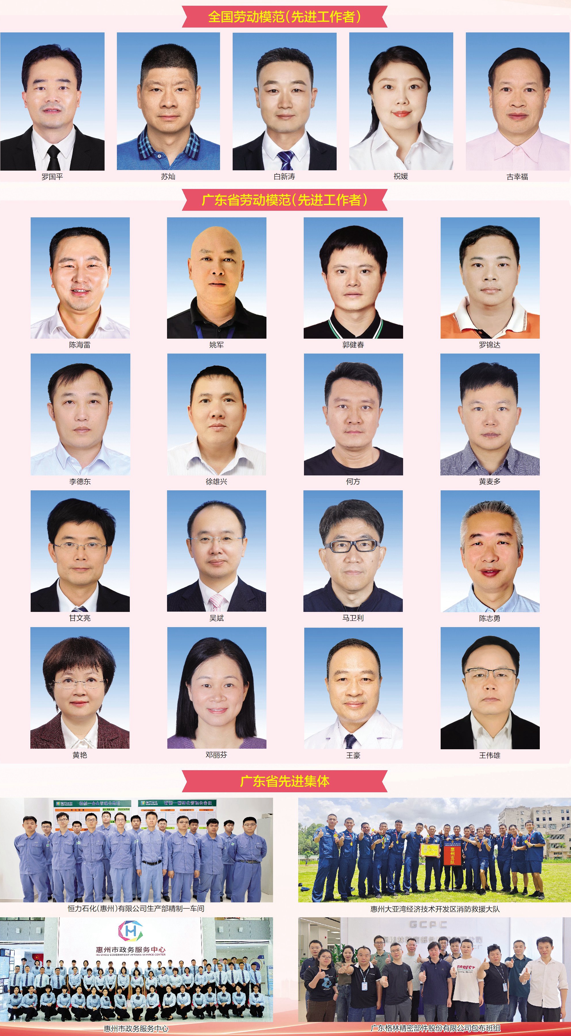 近日,惠州市21名個人和4個集體榮獲全國、省勞動模范(先進工作者)及省先進集體等榮譽稱號。他們扎根一線、勇?lián)姑谥悄苤圃、鄉(xiāng)村振興、公共服務、能源開發(fā)等領域深耕不輟,以創(chuàng)新突破和無私奉獻為惠州高質(zhì)量發(fā)展注入強勁動能,生動詮釋了新時代勞模精神、勞動精神、工匠精神。