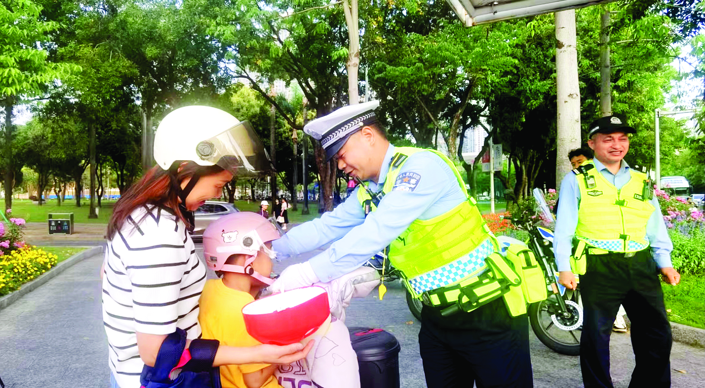 惠州交警開展送安全頭盔活動(dòng),增強(qiáng)群眾安全意識(shí)。