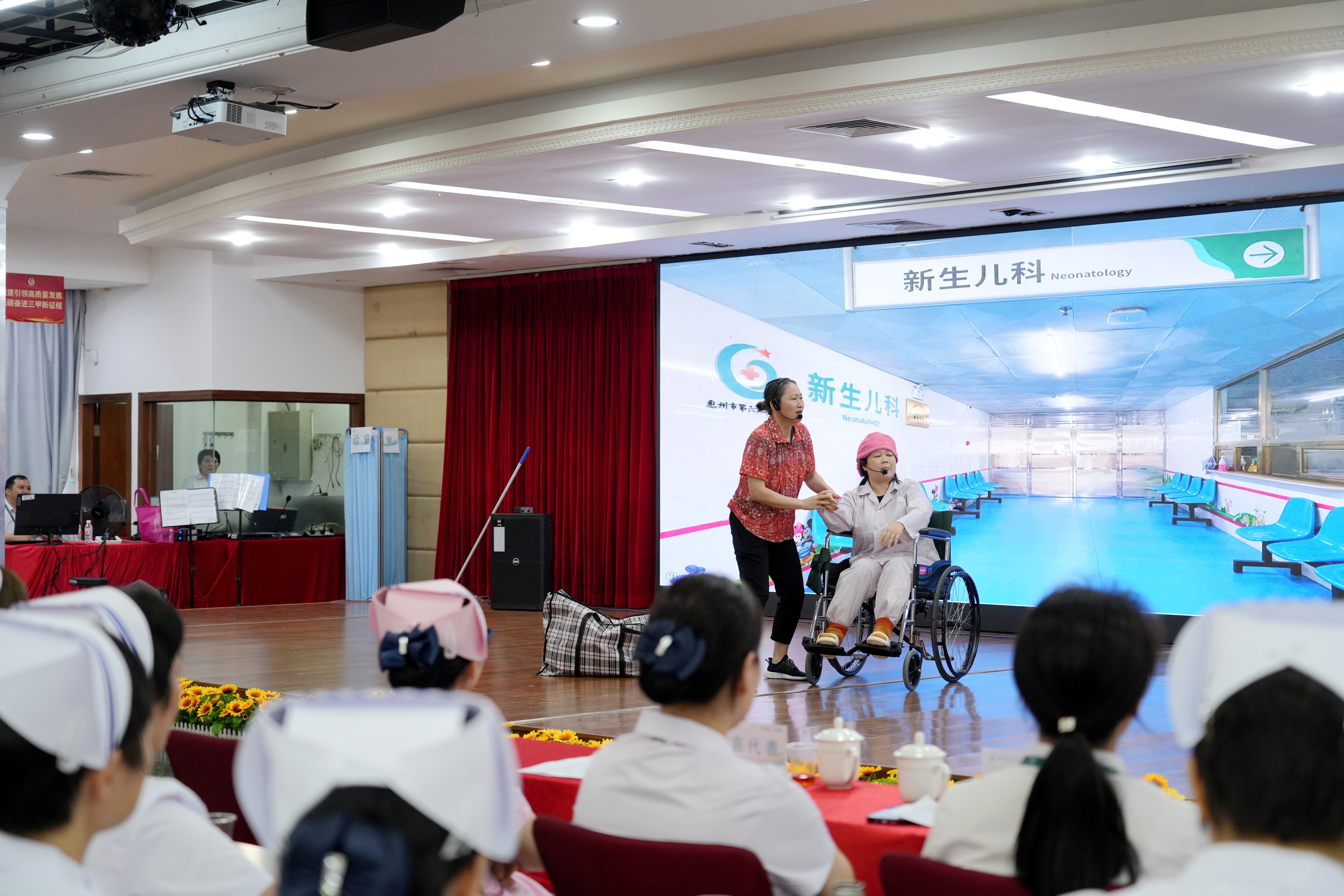 活動期間,新生兒科、兒科、門診部、神經(jīng)外科、神外ICU、甲乳外科、眼科等角色扮演競賽獲獎隊代表依次上臺進行臨床情景模擬競賽演示。其中,神經(jīng)外科、神外ICU等多科室聯(lián)合呈現(xiàn)的“‘患’位思考,讓守護更有溫度”節(jié)目榮獲特別體驗獎。護理人員化身患者,沉浸式演繹“淚道沖洗”“留置口咽通氣管”等操作,通過鏡頭記錄真實生理反應與心理感受,將“以患者為中心”的服務理念轉化為可觸可感的畫面,贏得現(xiàn)場陣陣掌聲。