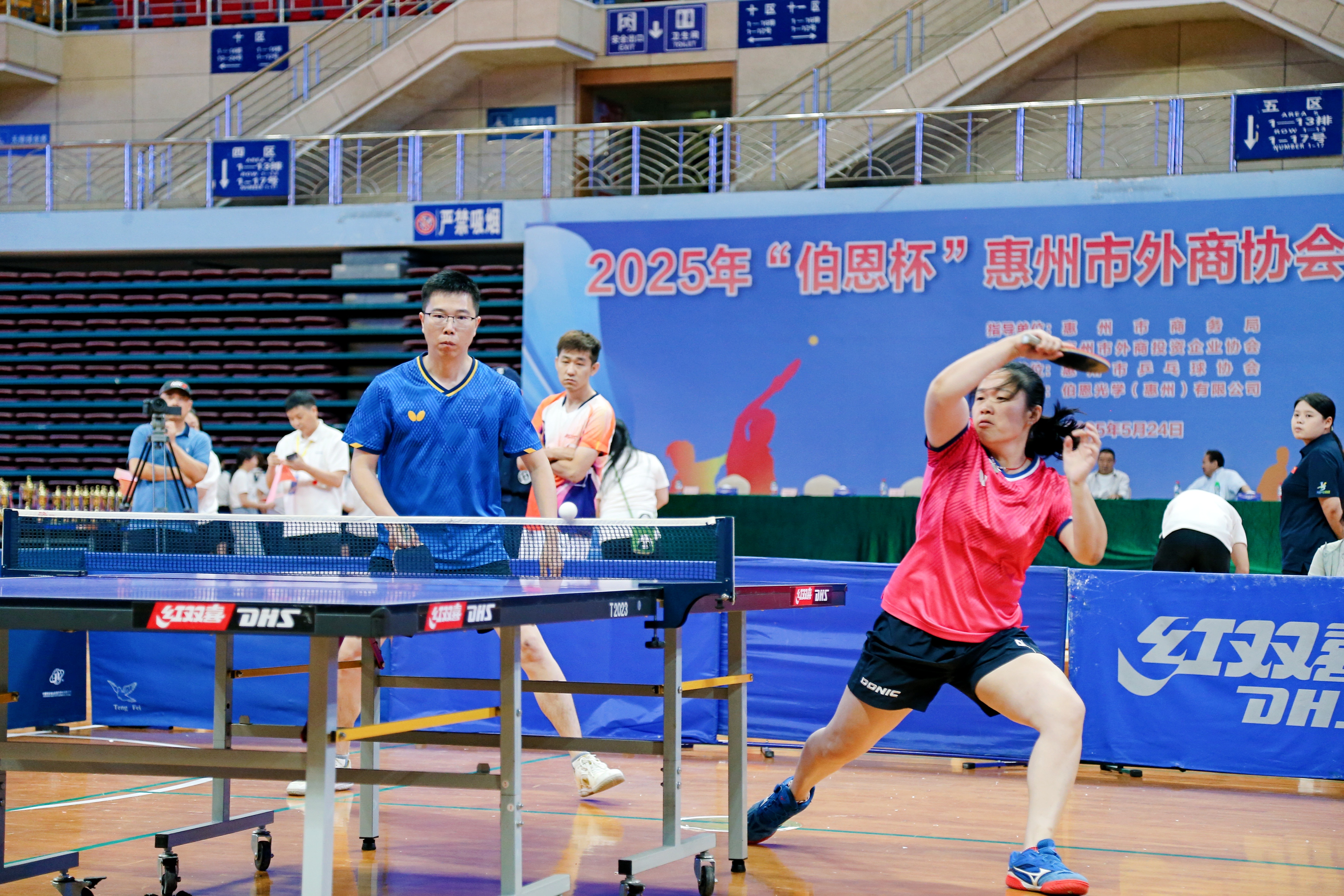 進(jìn)攻、防守,推擋、提拉,扣球、旋轉(zhuǎn)球、弧線球……5月 24日,由惠州市商務(wù)局指導(dǎo),惠州市外商投資企業(yè)協(xié)會(huì)主辦,惠州市乒乓球協(xié)會(huì)協(xié)辦,伯恩光學(xué)(惠州)有限公司全額贊助的惠州市外商協(xié)會(huì)第十屆乒乓球賽,在惠州江北體育館C館舉辦。共有11個(gè)機(jī)關(guān)單位,17家企業(yè)參加比賽,參賽運(yùn)動(dòng)員共200多人。