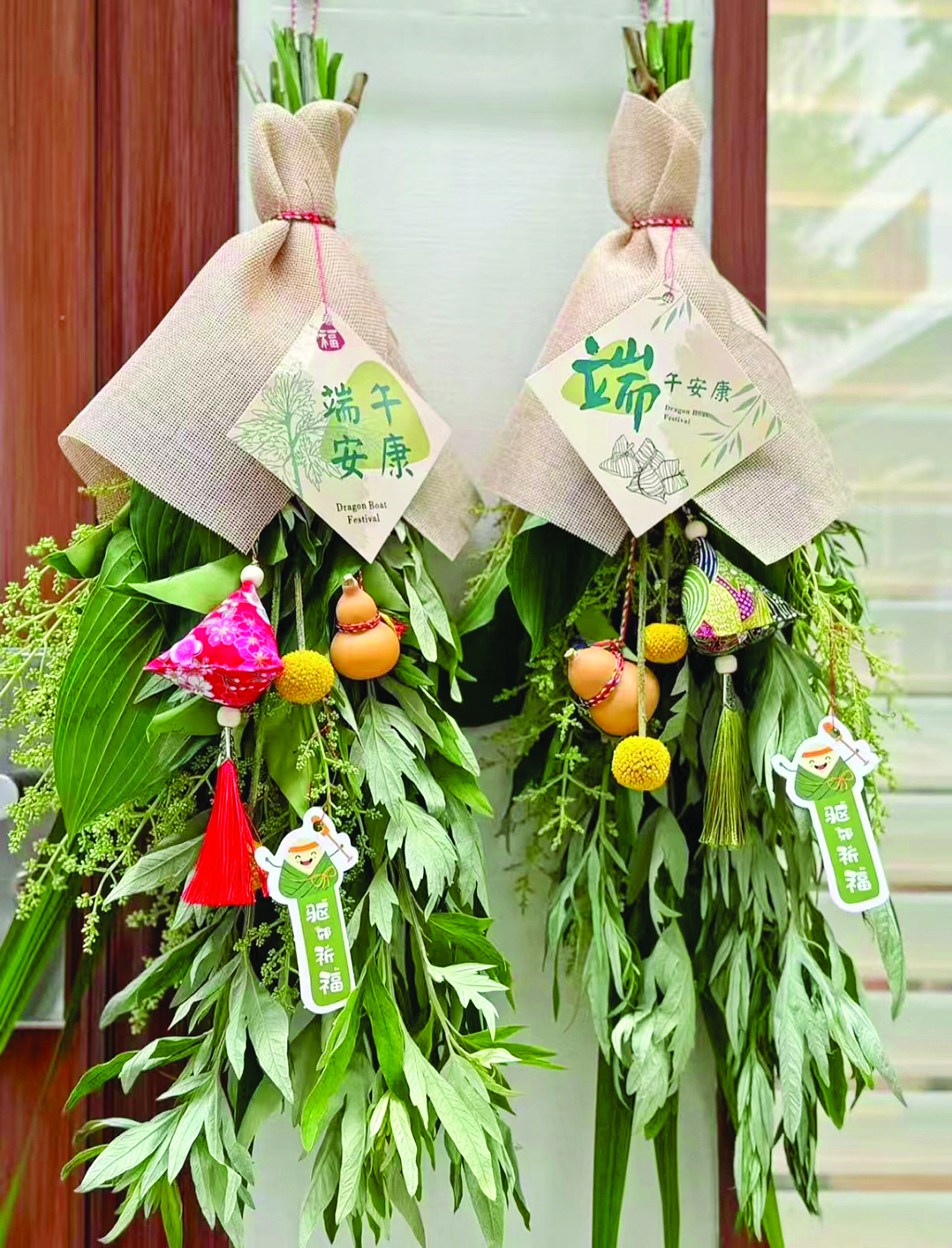 艾草、菖蒲、香囊、竹篾等傳統(tǒng)端午符號(hào),正通過(guò)設(shè)計(jì)改良的文創(chuàng)新品打開(kāi)新市場(chǎng)。記者在實(shí)地走訪中了解到,包含艾草束、菖蒲、香囊、竹篾和手寫(xiě)祝?ǖ拈T(mén)掛產(chǎn)品近日銷量迅速上升。根據(jù)客戶需要,各花店已推出多款搭配不同、造型各異的門(mén)掛。