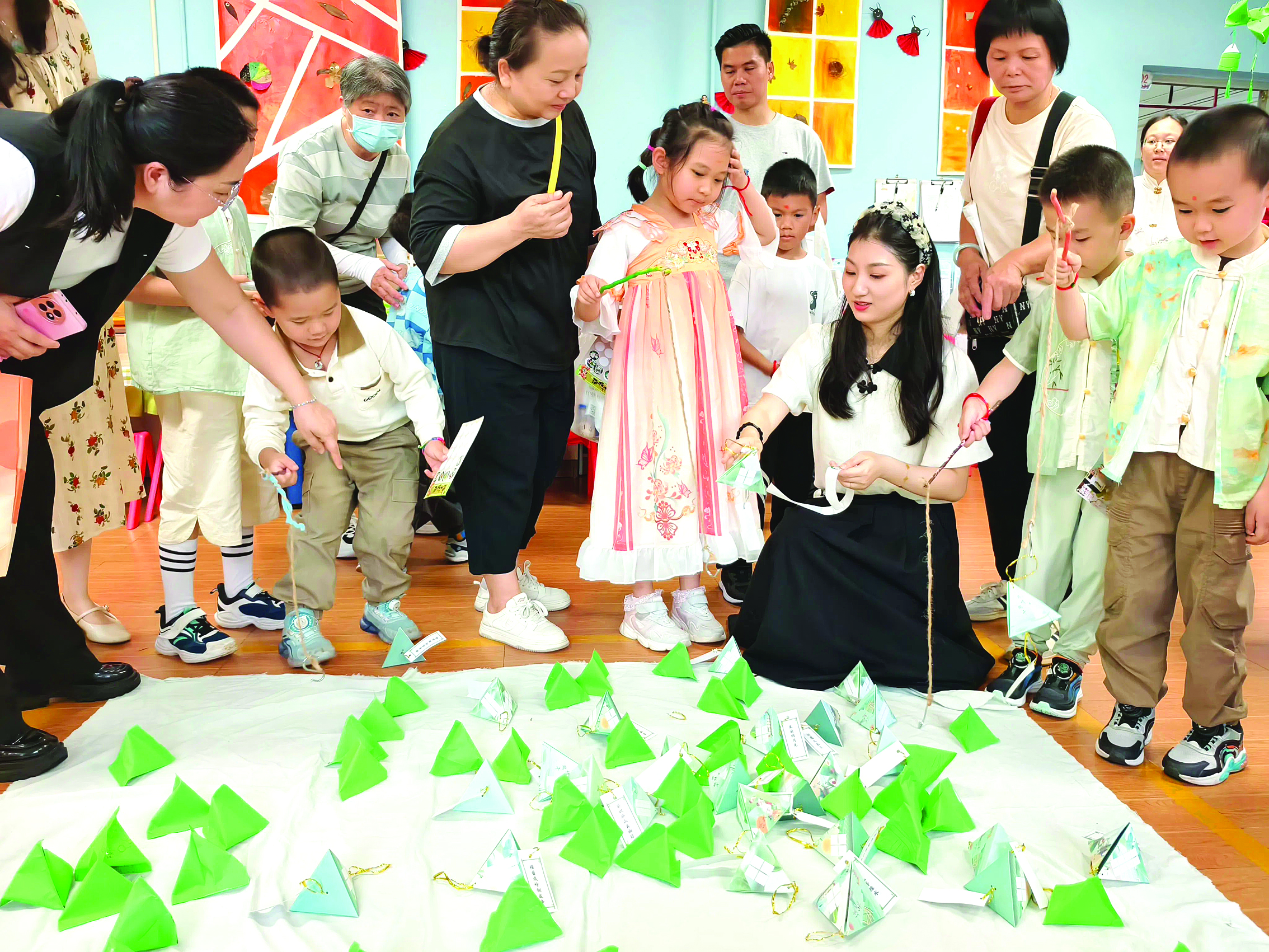 惠州市機(jī)關(guān)第一幼兒園孩子們玩“詩(shī)海尋粽”游戲。 惠州日?qǐng)?bào)記者葉麗莎 通訊員黃良如 攝