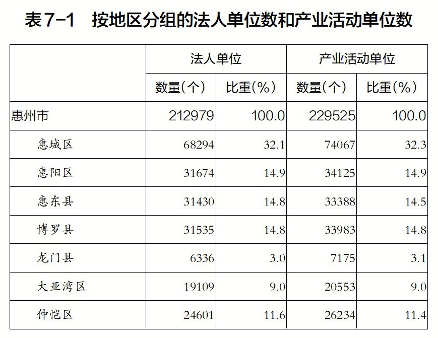 惠州市第五次全國經(jīng)濟普查公報(第七號)