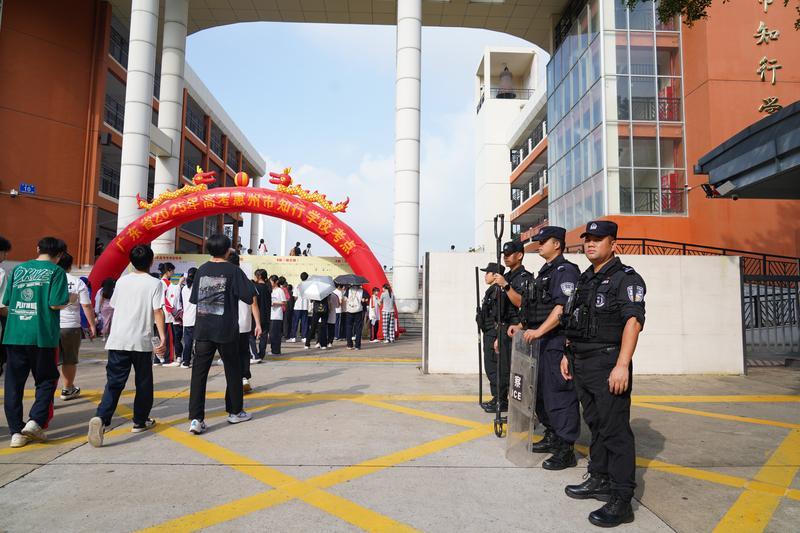 高考首日,惠州公安出動(dòng)警力3300人次在全市33個(gè)考點(diǎn)開展安保工作,護(hù)航高考。