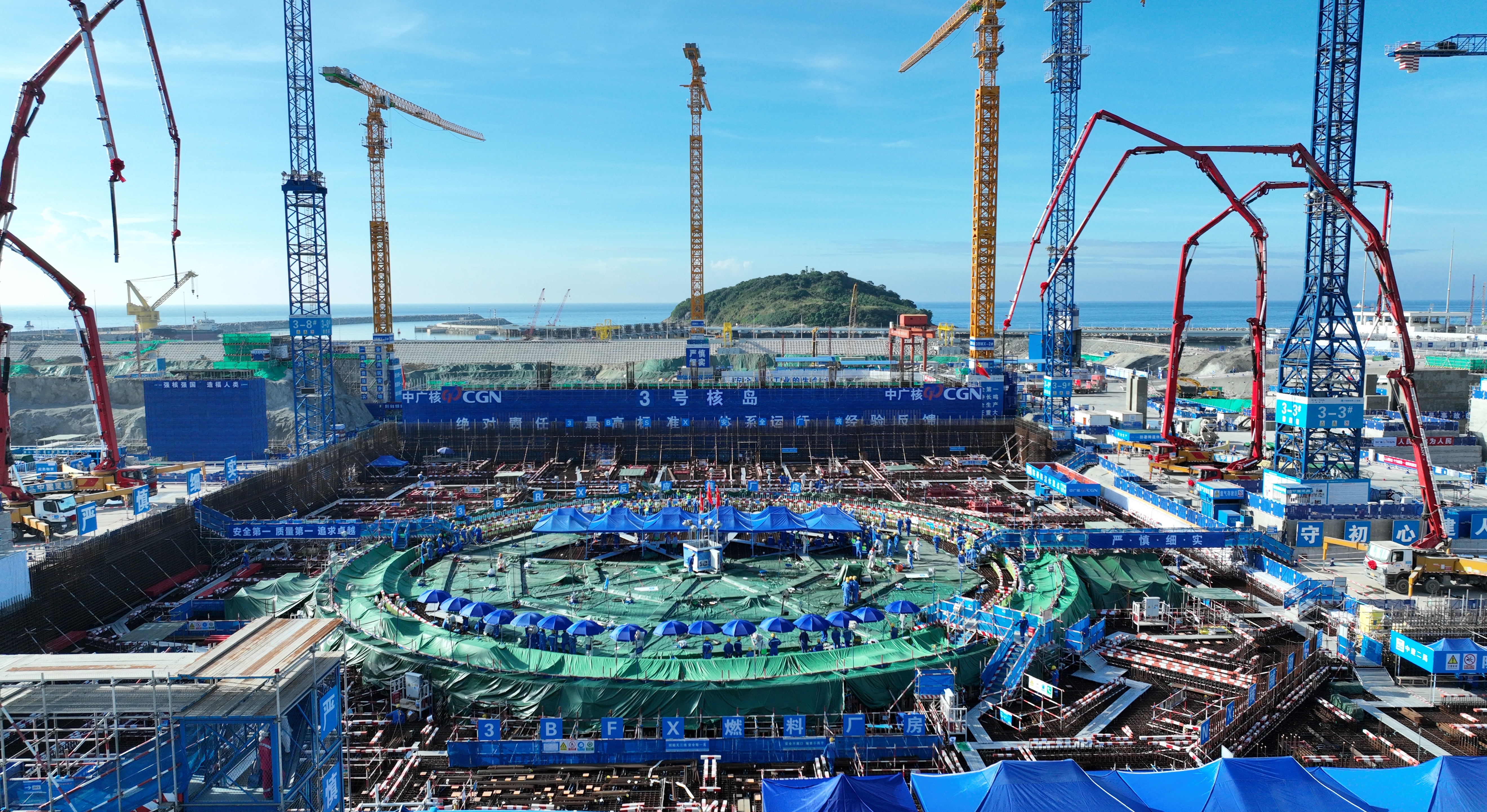 6月10日上午,中廣核廣東太平嶺核電廠3號機(jī)組核島第一罐混凝土開始澆筑;葜萑請笥浾唿S鑫威 謝寶樹 攝