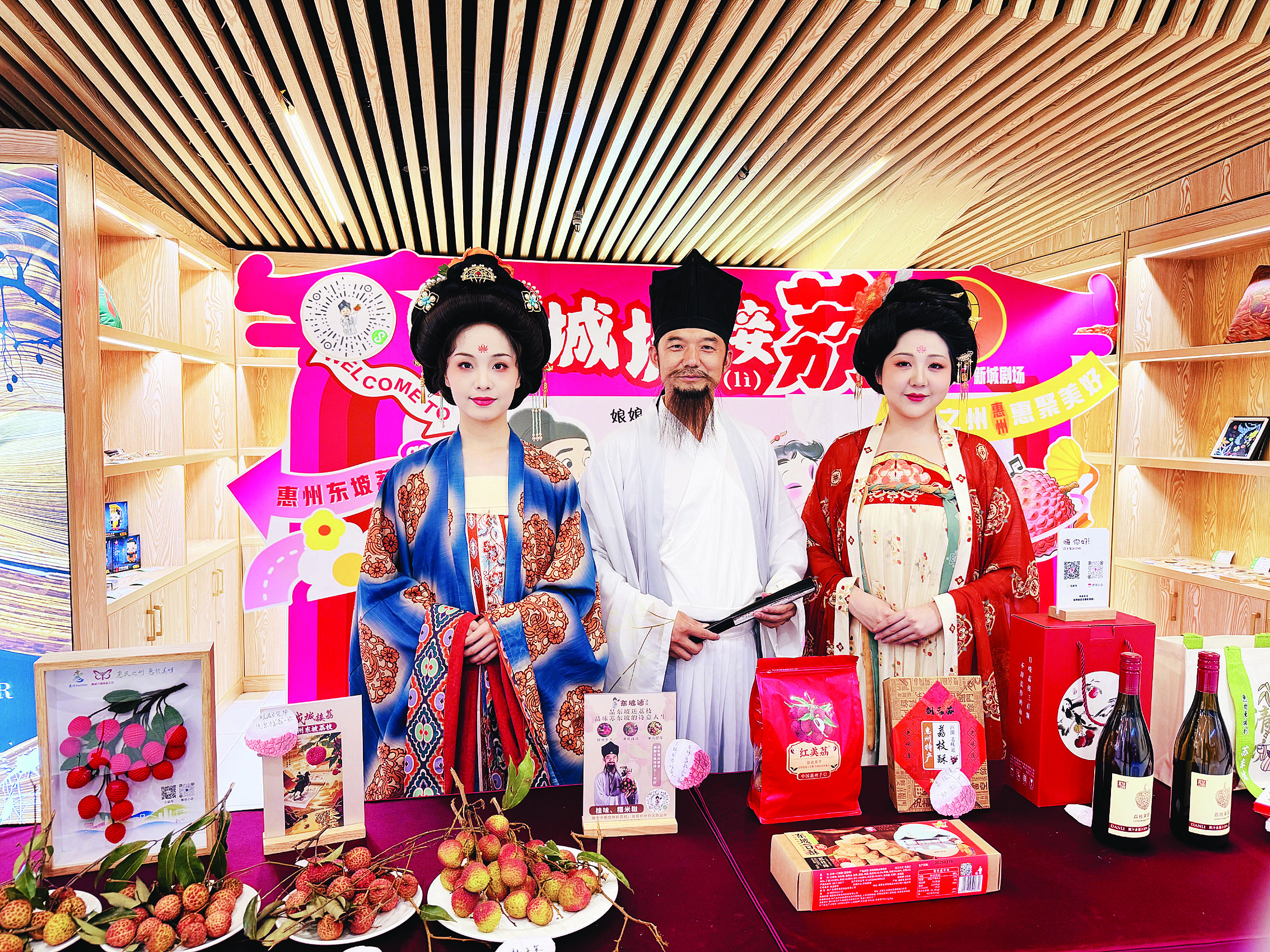 “蘇東坡”扮演者等演員現(xiàn)場(chǎng)推介惠州荔枝。