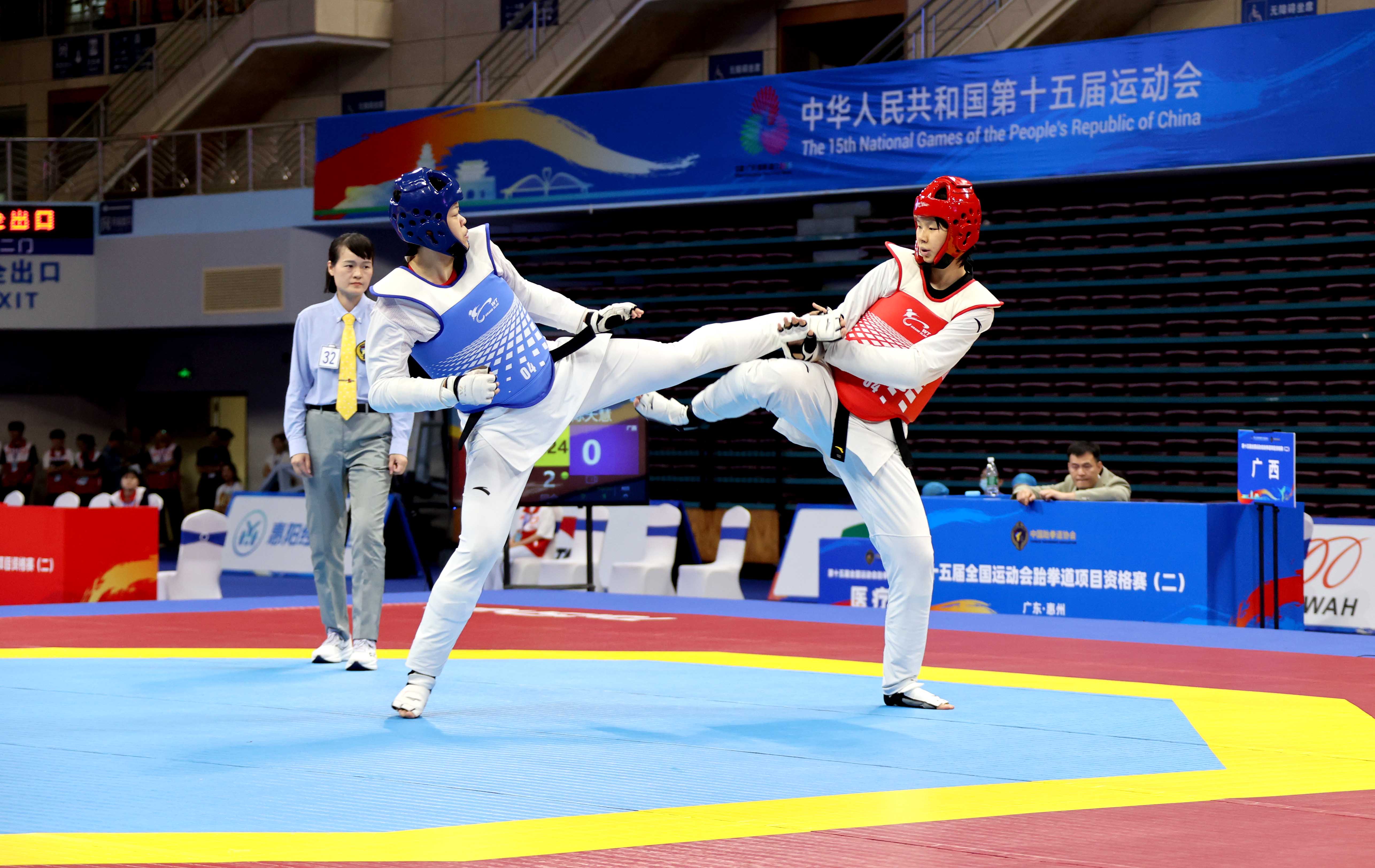 6月17日,第十五屆全國運(yùn)動會跆拳道項目資格賽(第二站)在惠州體育館開賽。