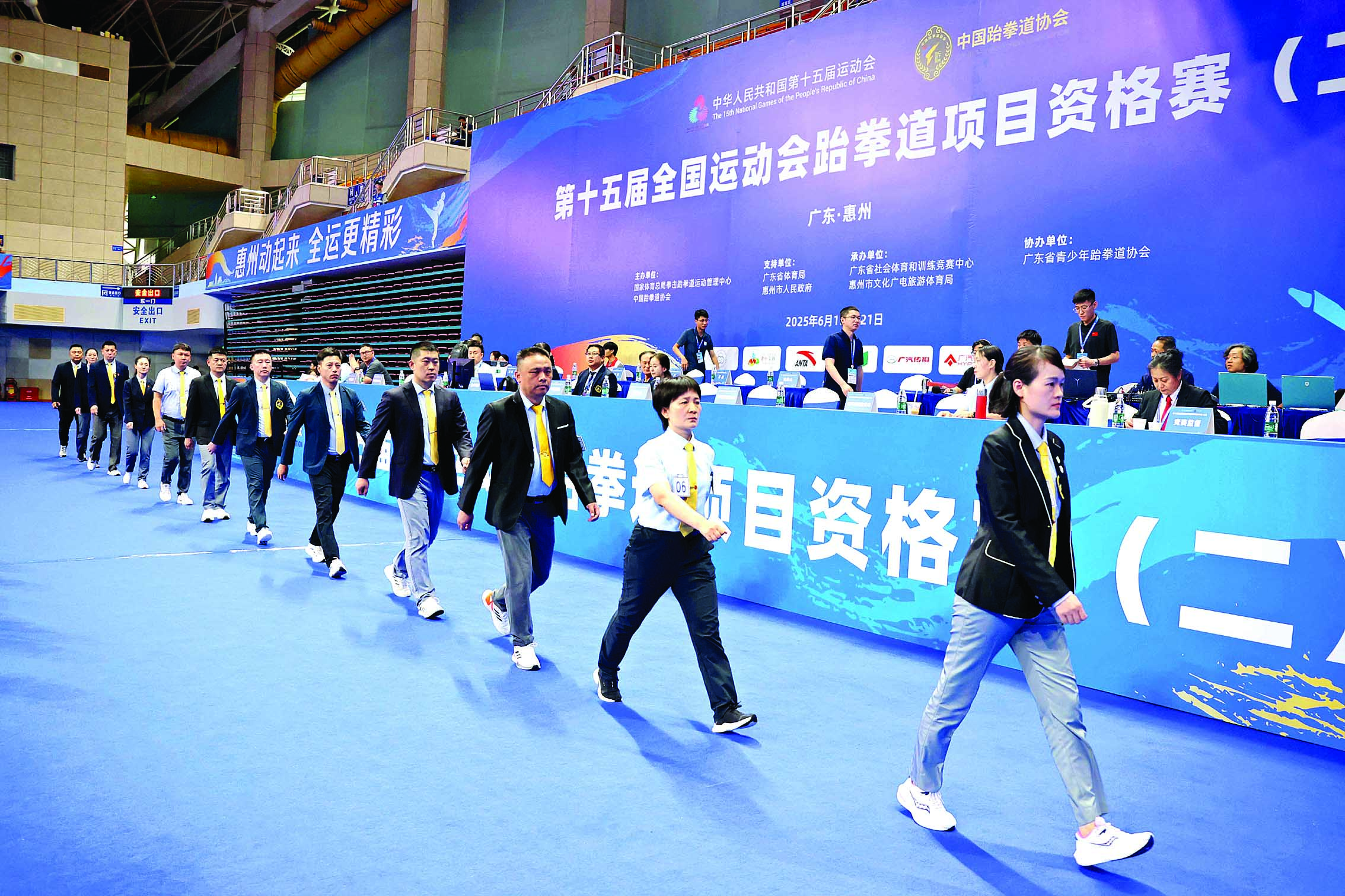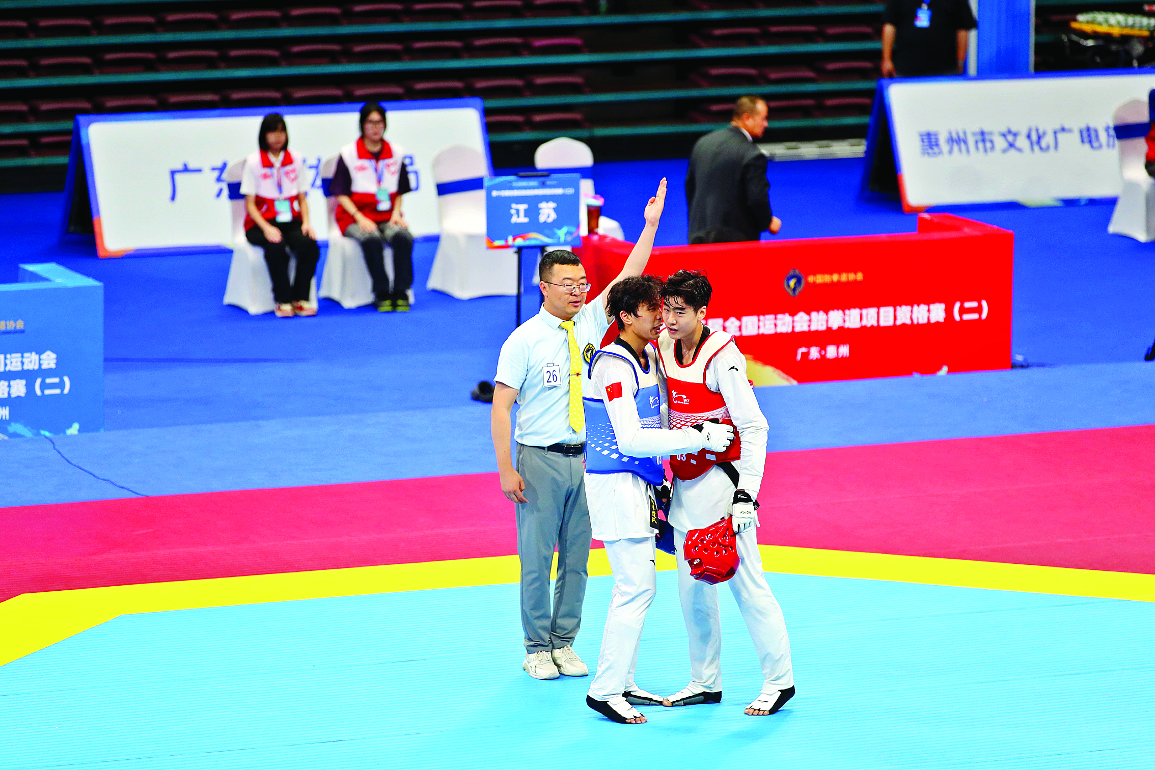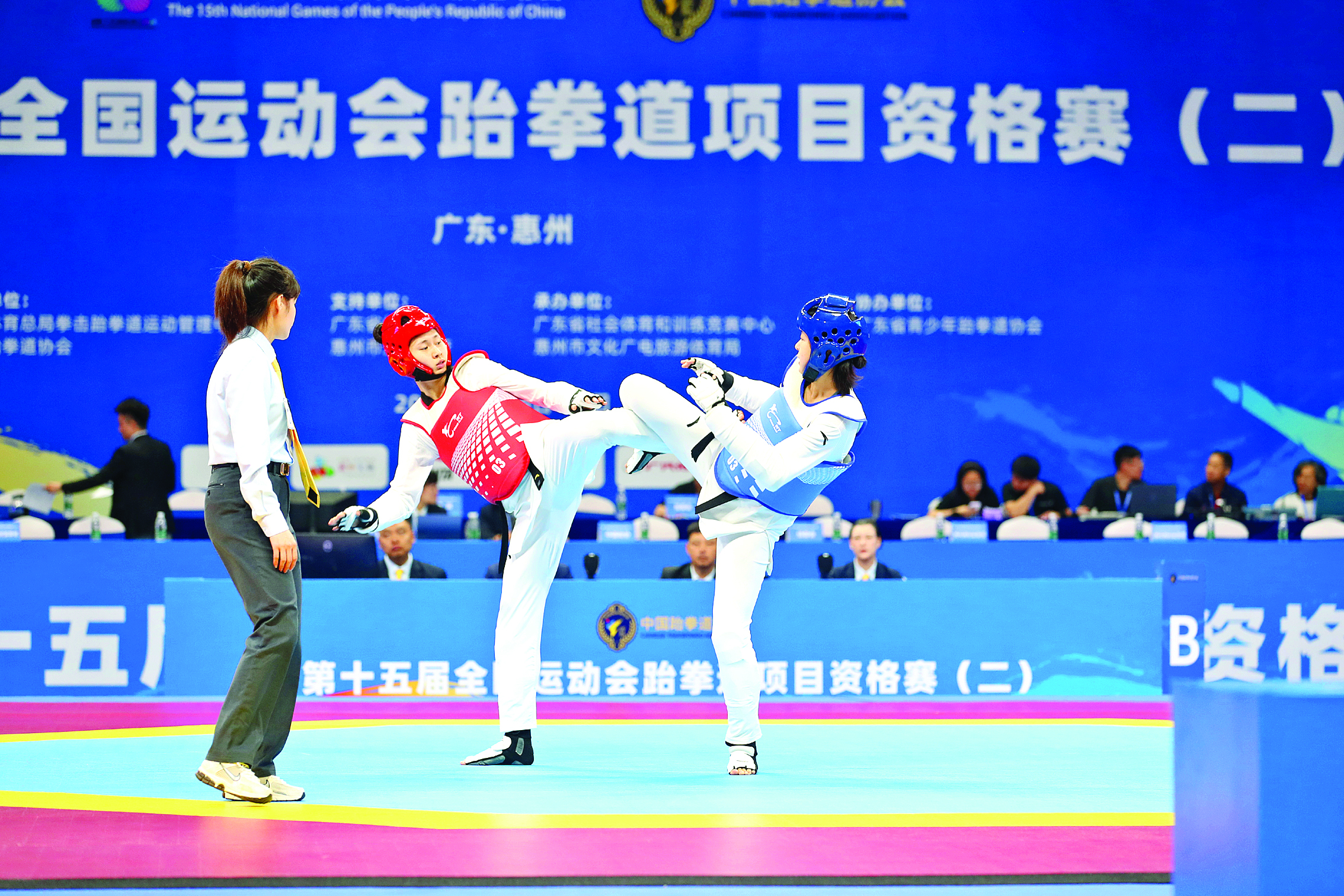 第十五屆全國(guó)運(yùn)動(dòng)會(huì)跆拳道項(xiàng)目資格賽(第二站)在惠州體育館舉行。這是全運(yùn)會(huì)跆拳道項(xiàng)目決賽前最后一場(chǎng)資格賽。賽事采用先進(jìn)的電子護(hù)具計(jì)分系統(tǒng),并嚴(yán)格執(zhí)行錄像審議制度,最大程度保障競(jìng)賽過(guò)程的公平、公正、公開(kāi)。經(jīng)過(guò)高水平、高強(qiáng)度的比賽,各項(xiàng)目級(jí)別競(jìng)爭(zhēng)激烈,精彩紛呈,最終確定剩余的16個(gè)全運(yùn)會(huì)決賽席位。