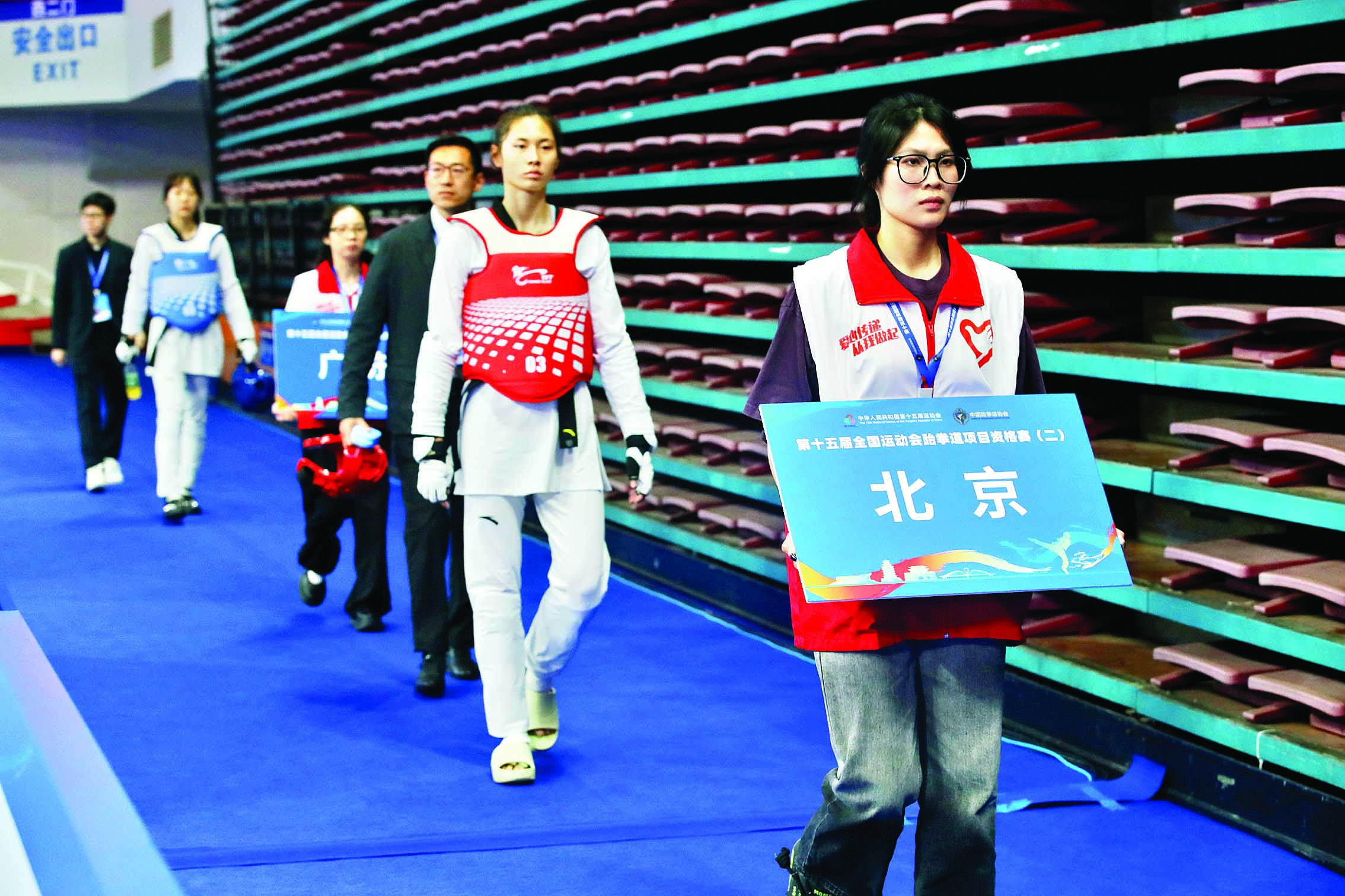 志愿者引導(dǎo)運(yùn)動(dòng)員進(jìn)場(chǎng)比賽。