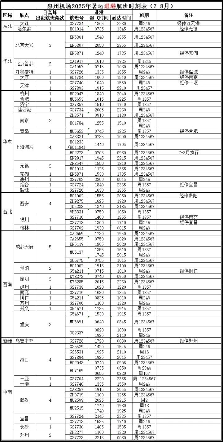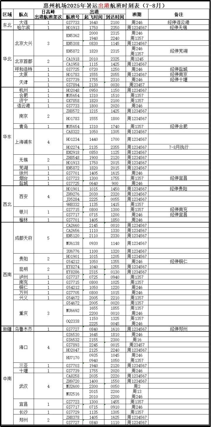 暑運(yùn)期間,惠州機(jī)場(chǎng)將有5條加班航線。