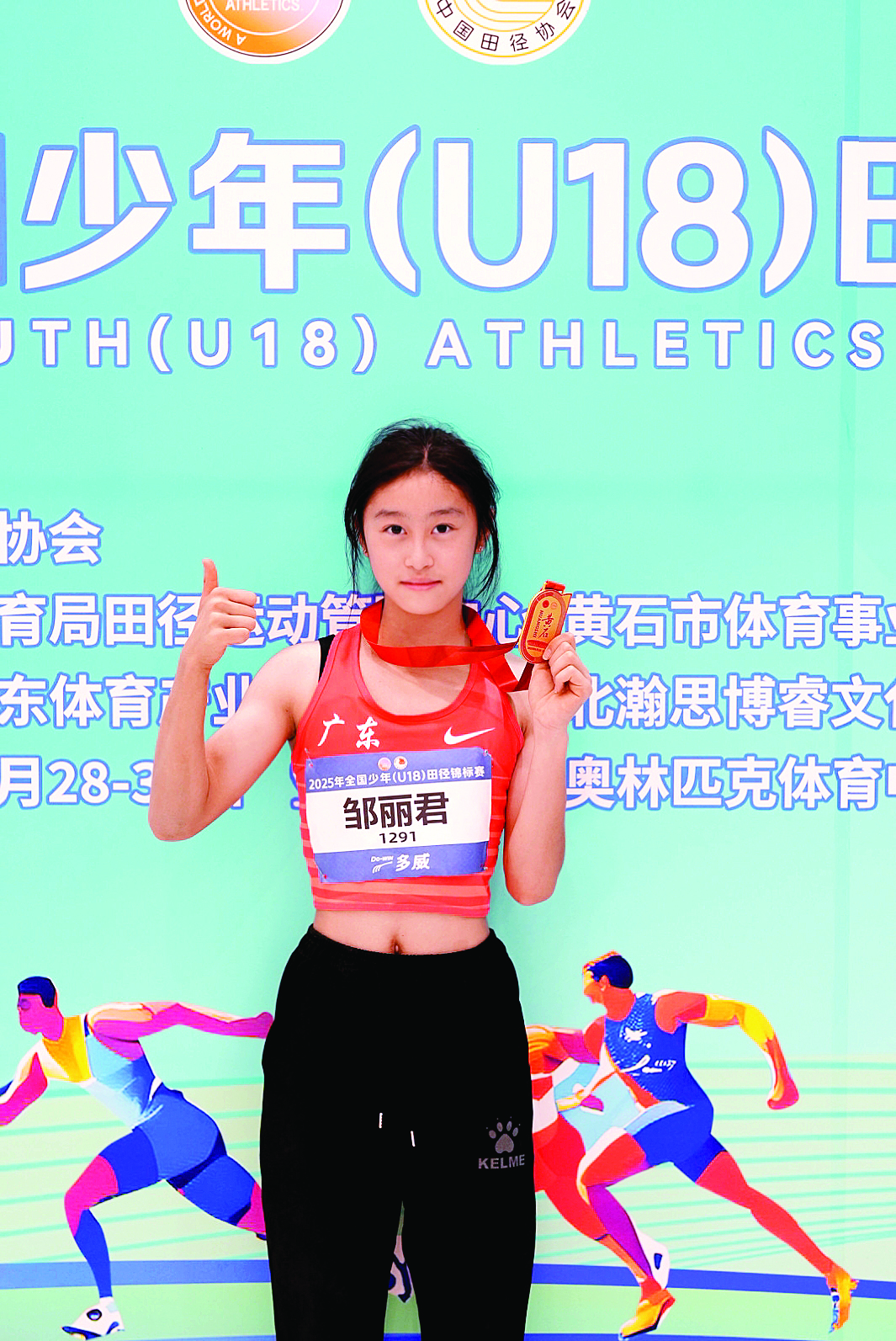 “我覺得我有這個水平,但沒想到驚喜來得太快了!”剛剛結(jié)束一天的訓(xùn)練,15歲的鄒麗君在接受記者采訪時,調(diào)皮的話語里毫不掩飾她的開心。在6月29日舉行的2025年全國少年(U18)田徑錦標(biāo)賽上,來自惠州大亞灣霞涌的鄒麗君以12.52米的成績獲得女子少年U16組三級跳遠冠軍。