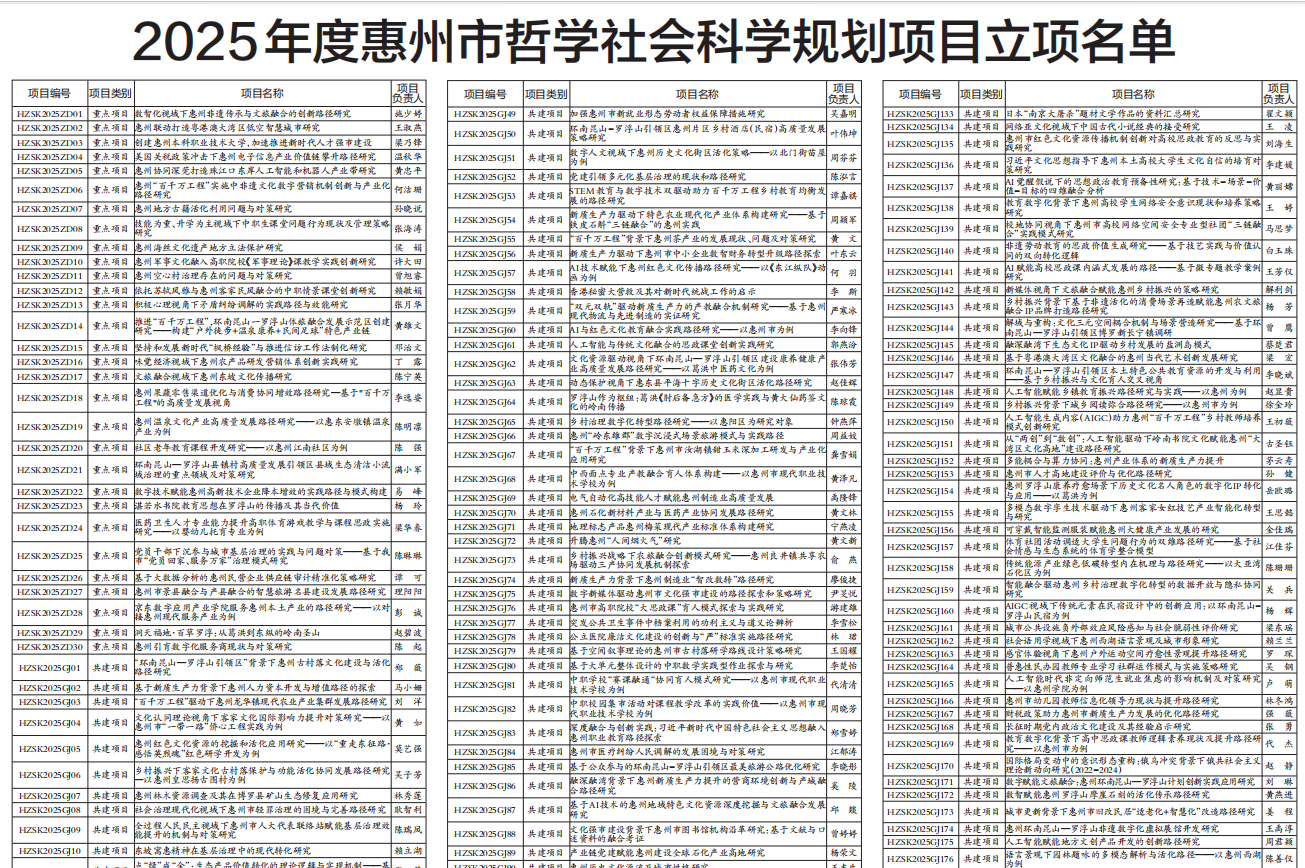 附件:2025年度惠州市哲學社會科學規(guī)劃項目立項名單