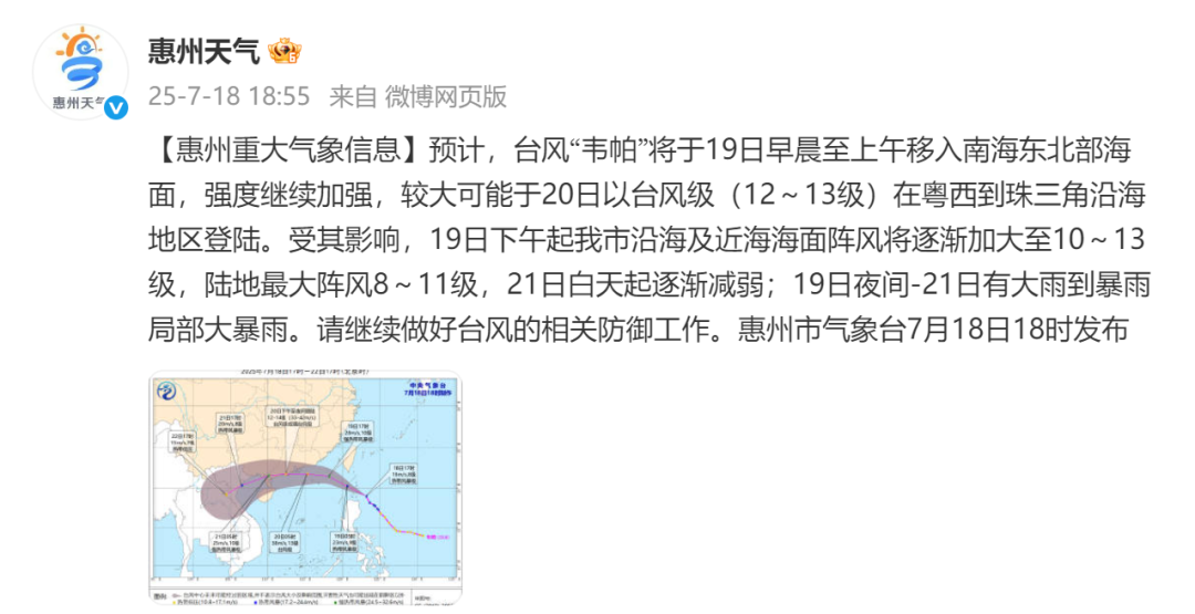 惠州發(fā)布重大氣象信息