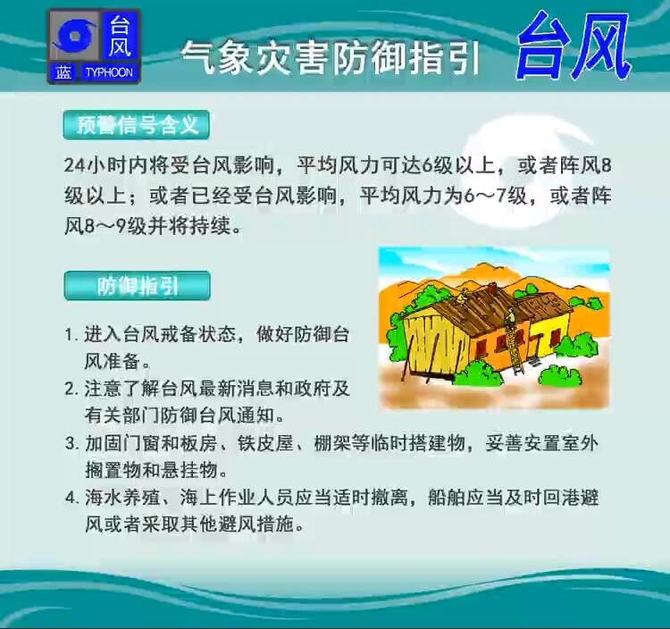 臺(tái)風(fēng)藍(lán)色預(yù)警信號(hào)。