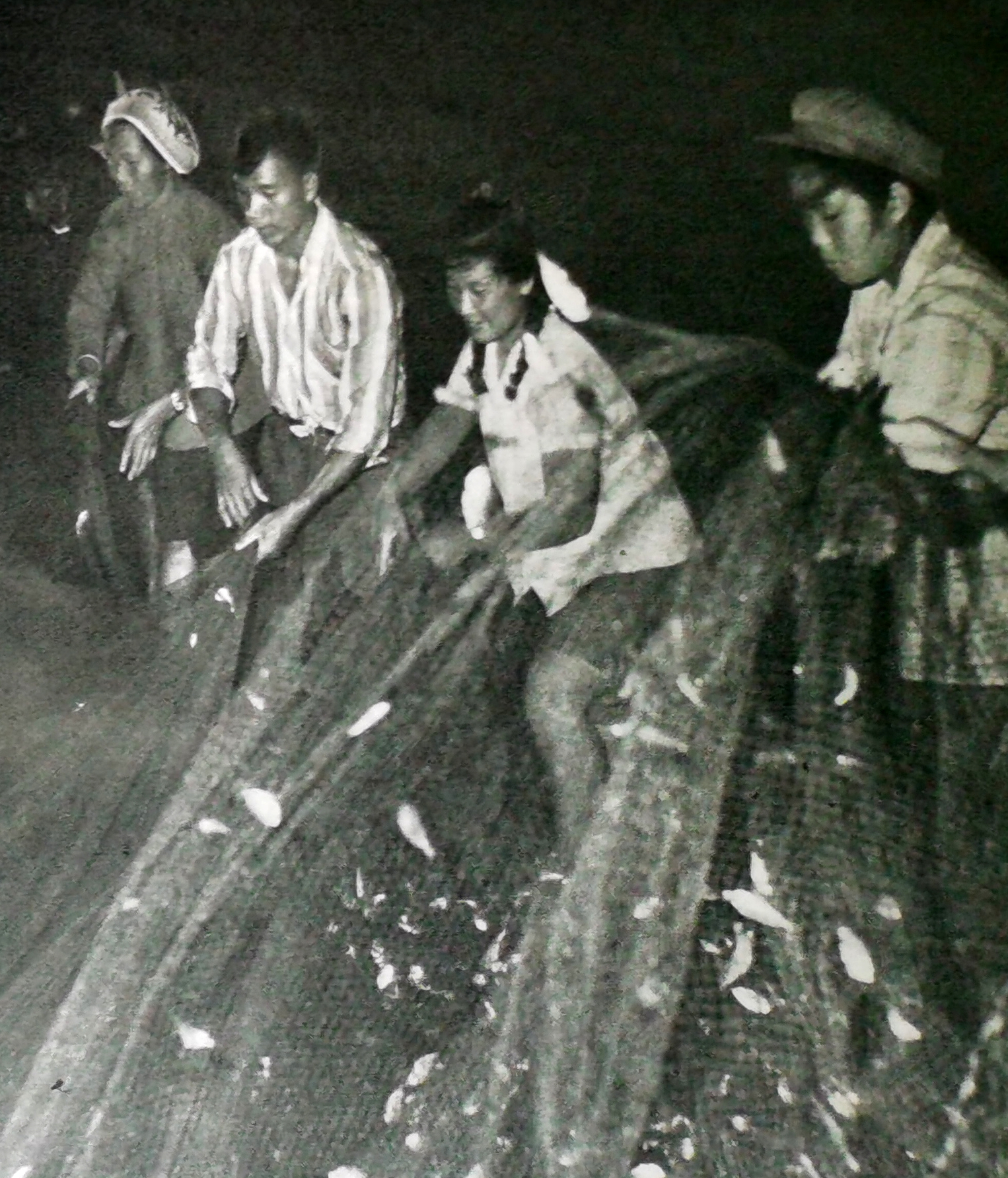 1979年《廣東畫報(bào)》第7期一幅反映大亞灣洲冷島(今東升島)漁民夜間捕魚的照片。侯縣軍 翻拍
