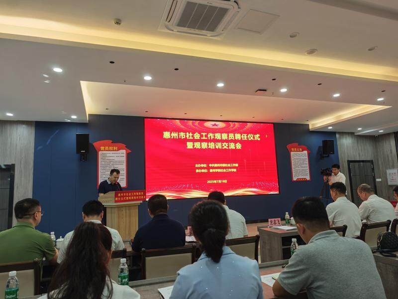 7月19日,惠州市社會工作觀察員聘任儀式暨觀察培訓(xùn)交流會在惠城區(qū)小金口街道金雞村舉行。