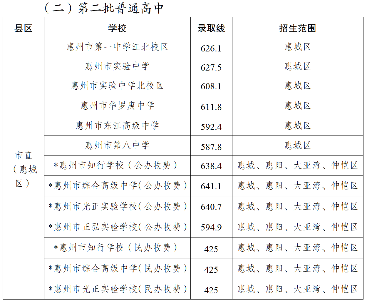 惠州普通高中錄取分?jǐn)?shù)線出爐