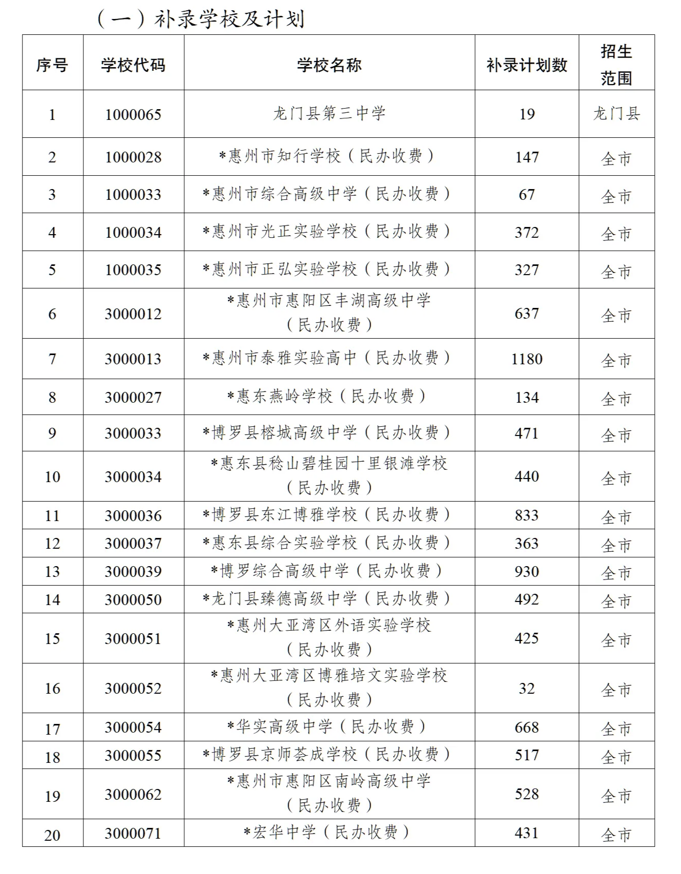 根據(jù)全市普通高中學(xué)校第一階段錄取結(jié)果,20所學(xué)校尚余招生指標(biāo),除了龍門縣第三中學(xué)只面向龍門考生補(bǔ)錄外,其他19所學(xué)校的補(bǔ)錄對(duì)象為在我市參加2025年中考的考生,如考生(普通生及特長(zhǎng)生)在普通高中各批次中均未被我市普通高中學(xué)校錄取,且中考成績(jī)?cè)?95分及以上,即可參加補(bǔ)錄。符合補(bǔ)錄條件且自愿選擇參加補(bǔ)錄的考生須按流程填報(bào)補(bǔ)錄志愿,符合補(bǔ)錄條件但未填補(bǔ)錄志愿的考生不能參加補(bǔ)錄。