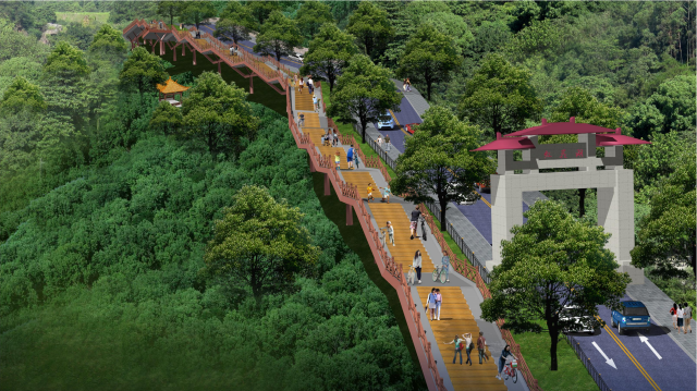 (上圖為五米棧道的效果圖,完工后可供自行車上下通行)