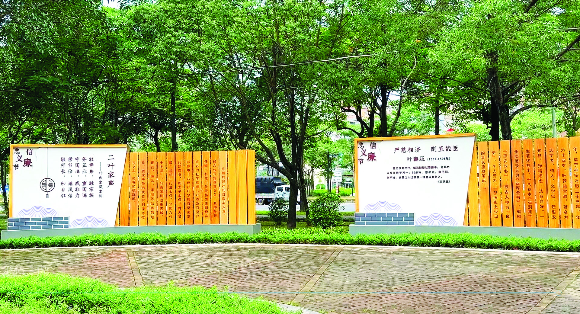 惠城區(qū)新時(shí)代廉潔文化公園中關(guān)于歷史人物“二葉”及葉氏家訓(xùn)介紹。