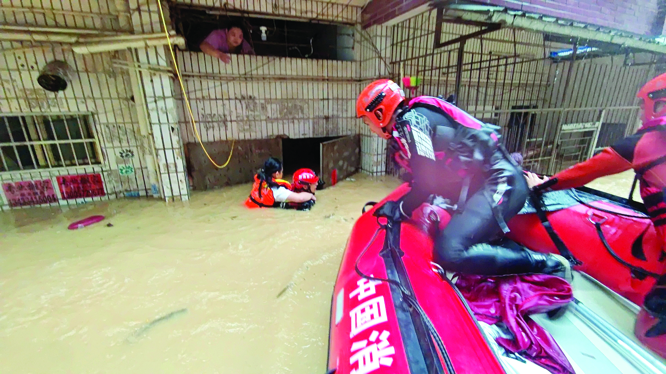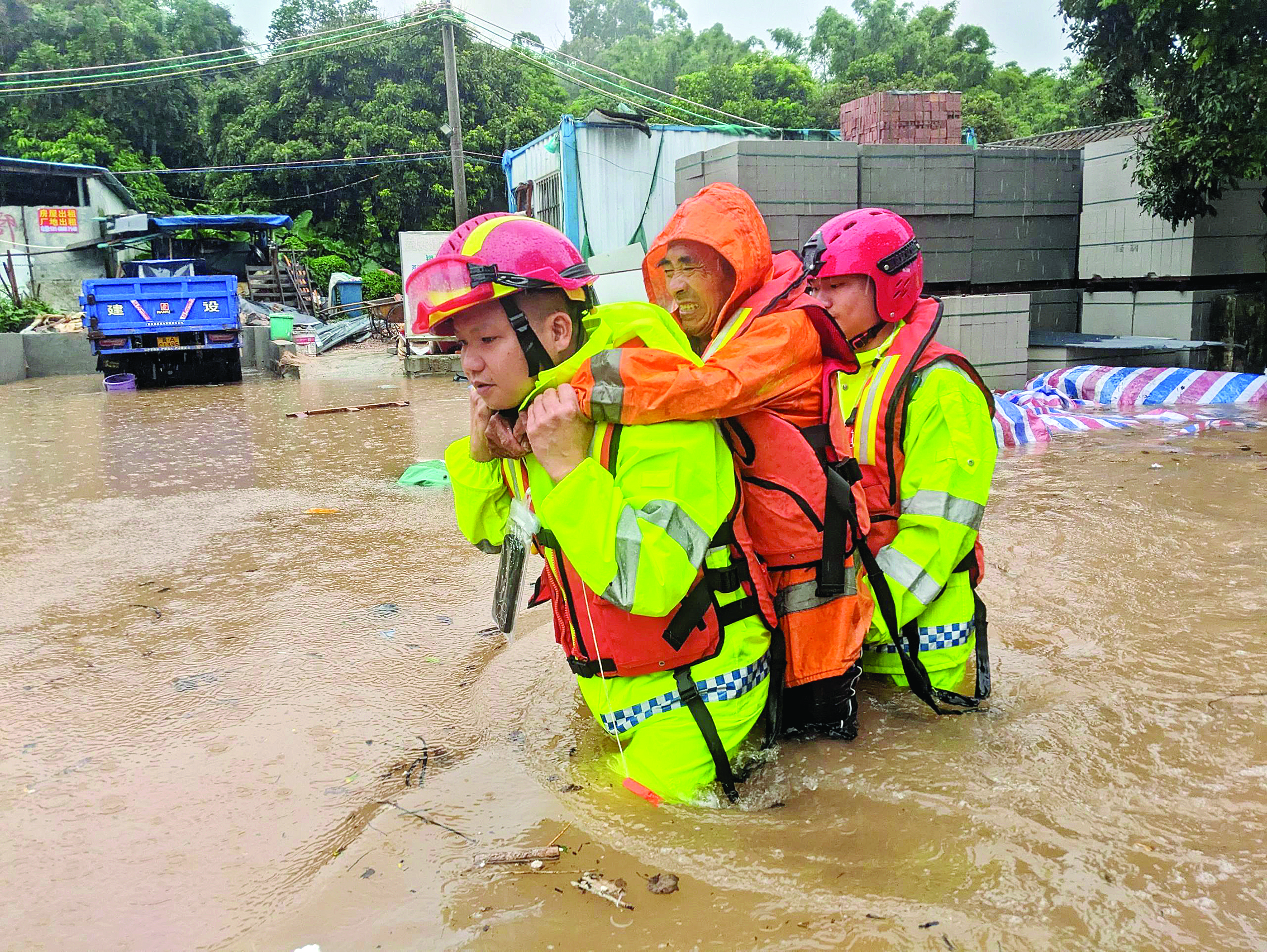 在惠東平山街道黃排桃源居,消防人員救出受困群眾。 惠州消防供圖