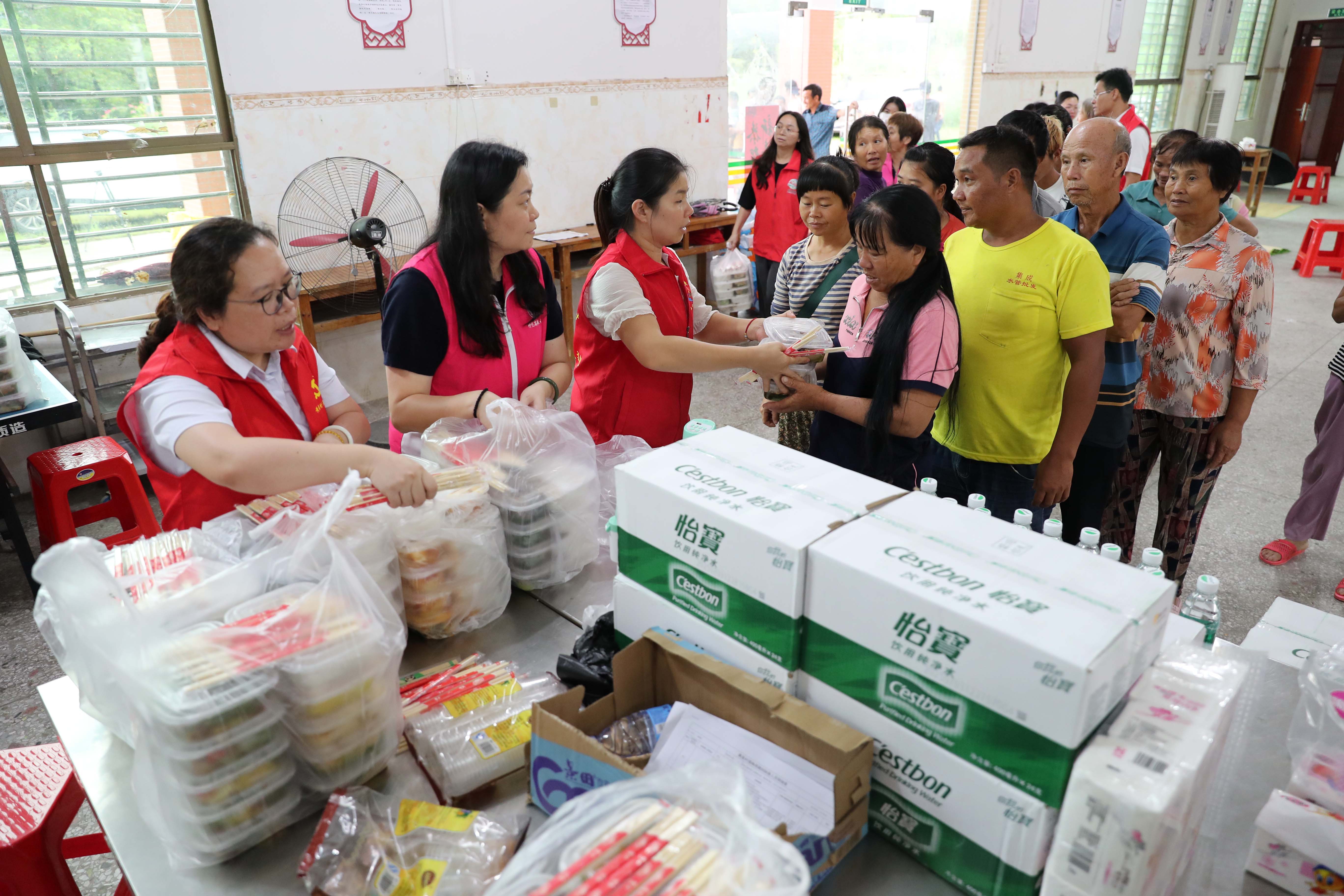 8月5日,仲愷潼湖鎮(zhèn)的平塘湖出現(xiàn)水位上漲及局部漫溢情況,當(dāng)?shù)匮杆俎D(zhuǎn)移群眾至安全地帶。這是8月6日傍晚被轉(zhuǎn)移至黃屋村安置點(diǎn)的群眾在排隊(duì)領(lǐng)取晚餐。惠州日?qǐng)?bào)記者朱金贊 楊建業(yè) 實(shí)習(xí)生劉倩 攝