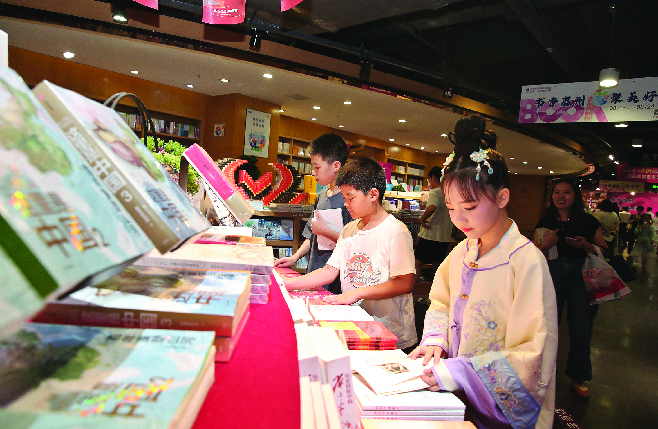 8月15日上午,一群小讀者在2025南國(guó)書香節(jié)惠州分會(huì)場(chǎng)暨第十五屆惠州書展閱讀圖書;葜萑?qǐng)?bào)記者鐘暢新 攝